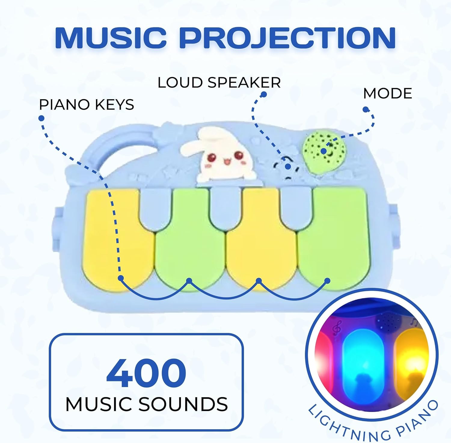 - 【6 Different Modes of Our Baby Newborn Infant Play Mat Gym】Lying, Sitting, Tummy Time, Kick as well as Play & Take-Along. The unique musical piano key with Light attracts the baby to touch, immediately emits a beautiful sound, and stimulates the baby's curiosity.