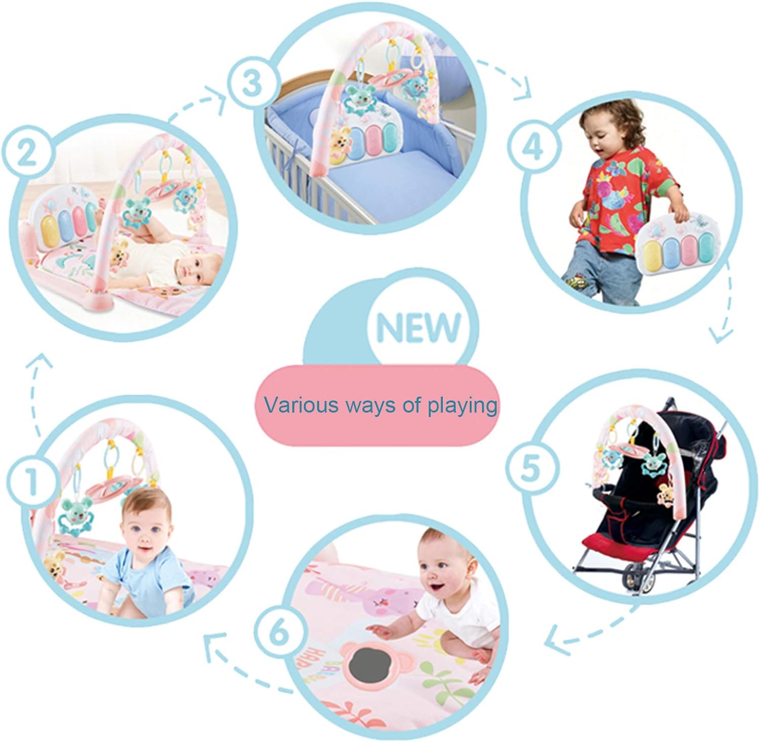 • Perfect For Many Age Stages Baby gym fit for 0-6 month and 6-12 month baby Can be laid flat on the ground let the baby kick and play guide baby play with piano gym when lying sitting and sprawling