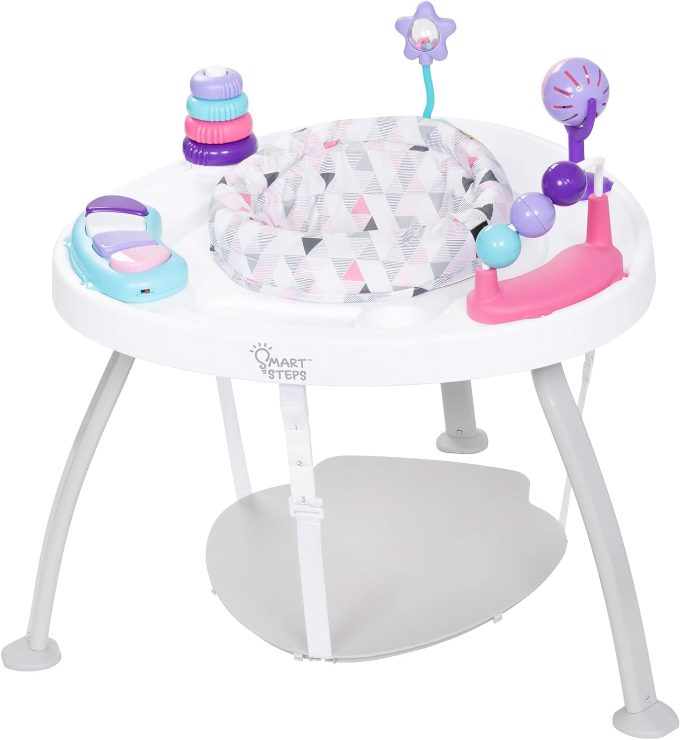 Product Description Created to grow with baby, our multi-functional Baby Trend 3-in-1 Bounce N’ Play Activity Center PLUS easily converts from an activity center, to an Activity Play Table, then to a Flat Table allowing your baby to discover and develop essential skills. With the sturdy 3-point leg support, parents can have peace of mind watching their children play while learning. Baby's curiosity is captured with the 360-degree rotating seat, bouncing board and removable toys that can be taken on the go. Set Contains: Activity Center