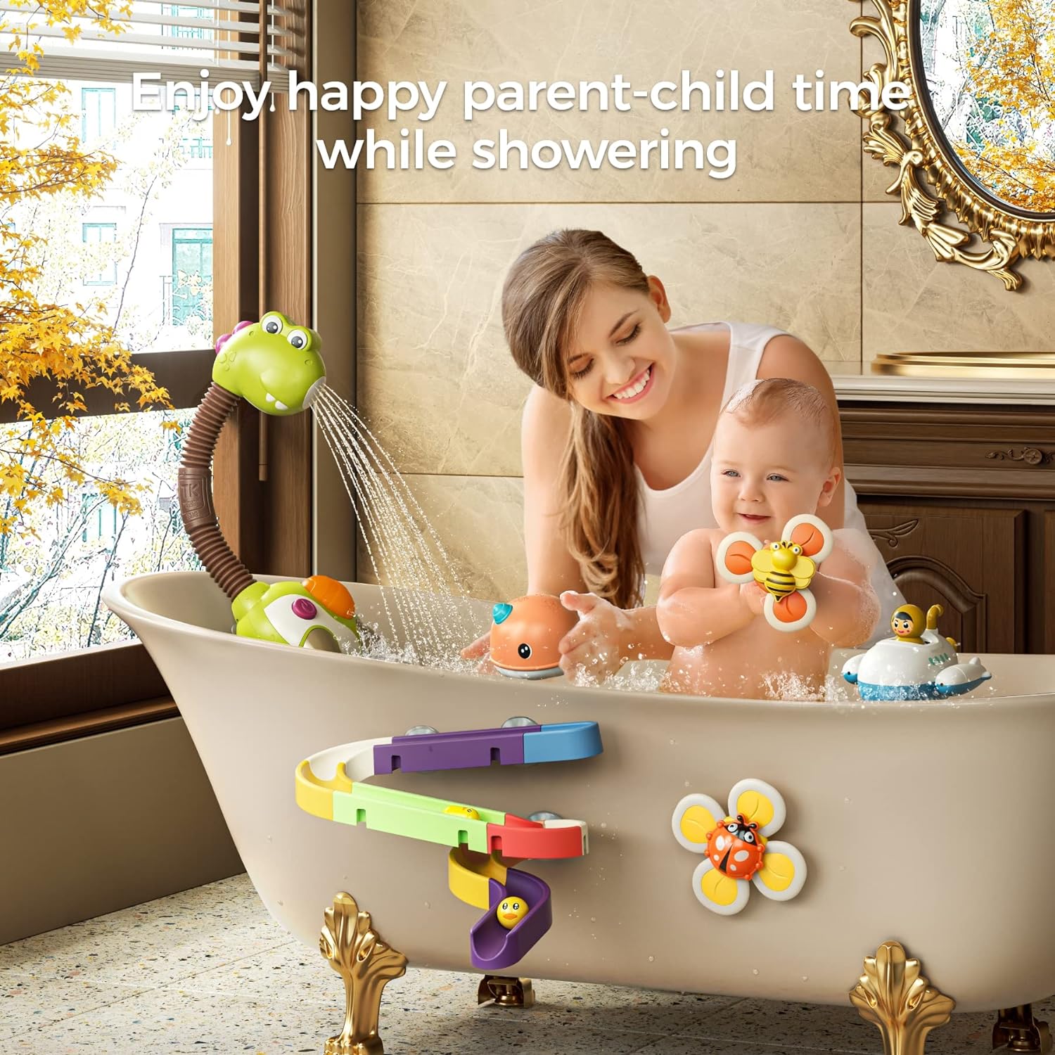 - A fun and interactive showerhead toy that will turn bath time into playtime.360 ° multi-angle adjustable shower head toy can take care of the kid's skin all-round. Gentle water play for your little one to enjoy the fun of this shower toy