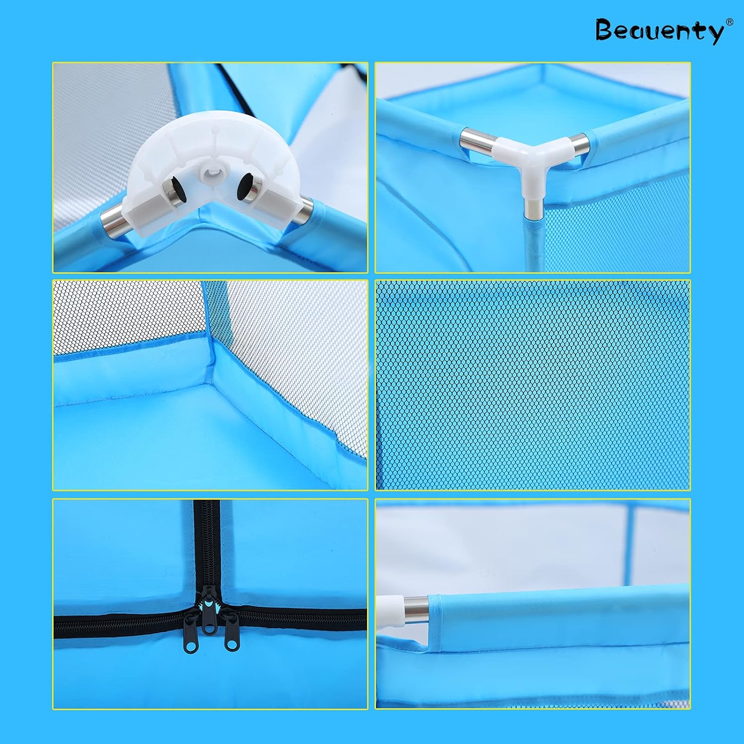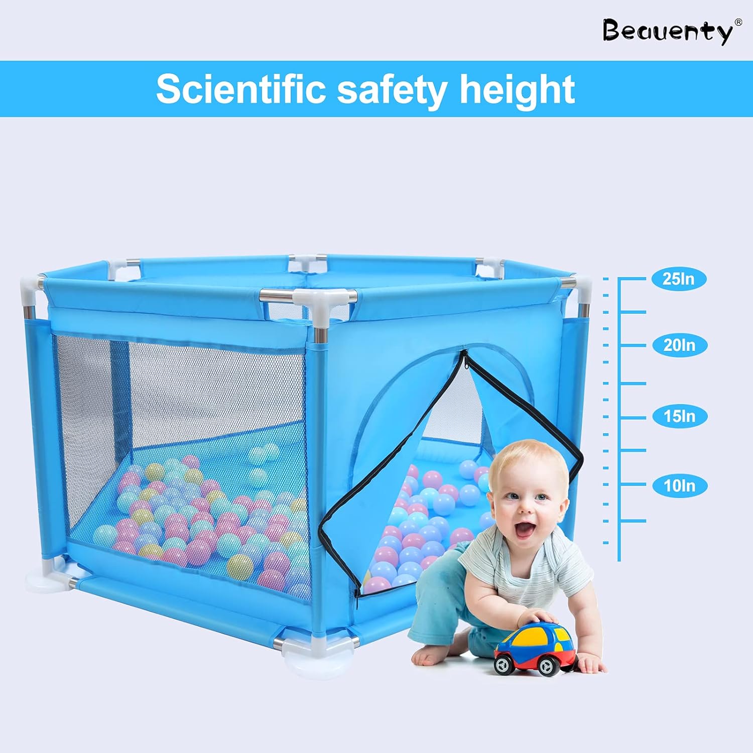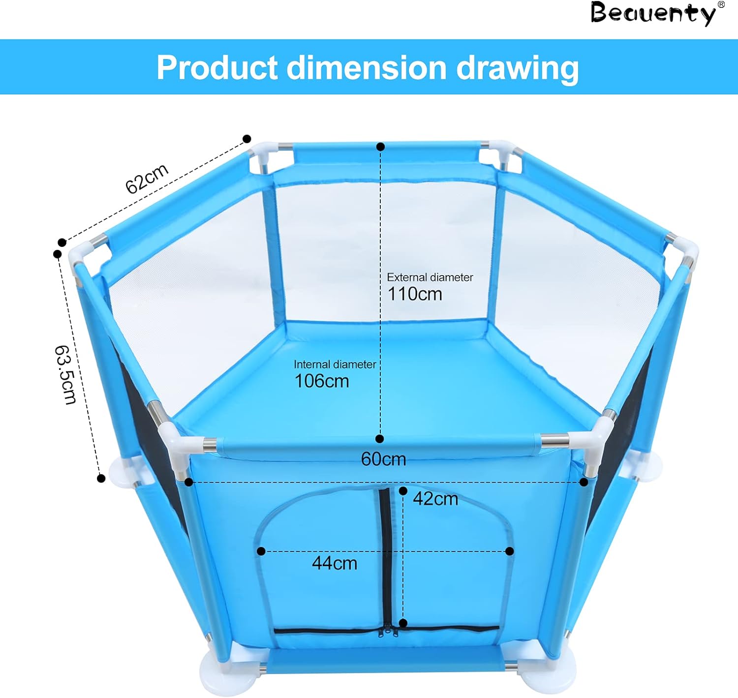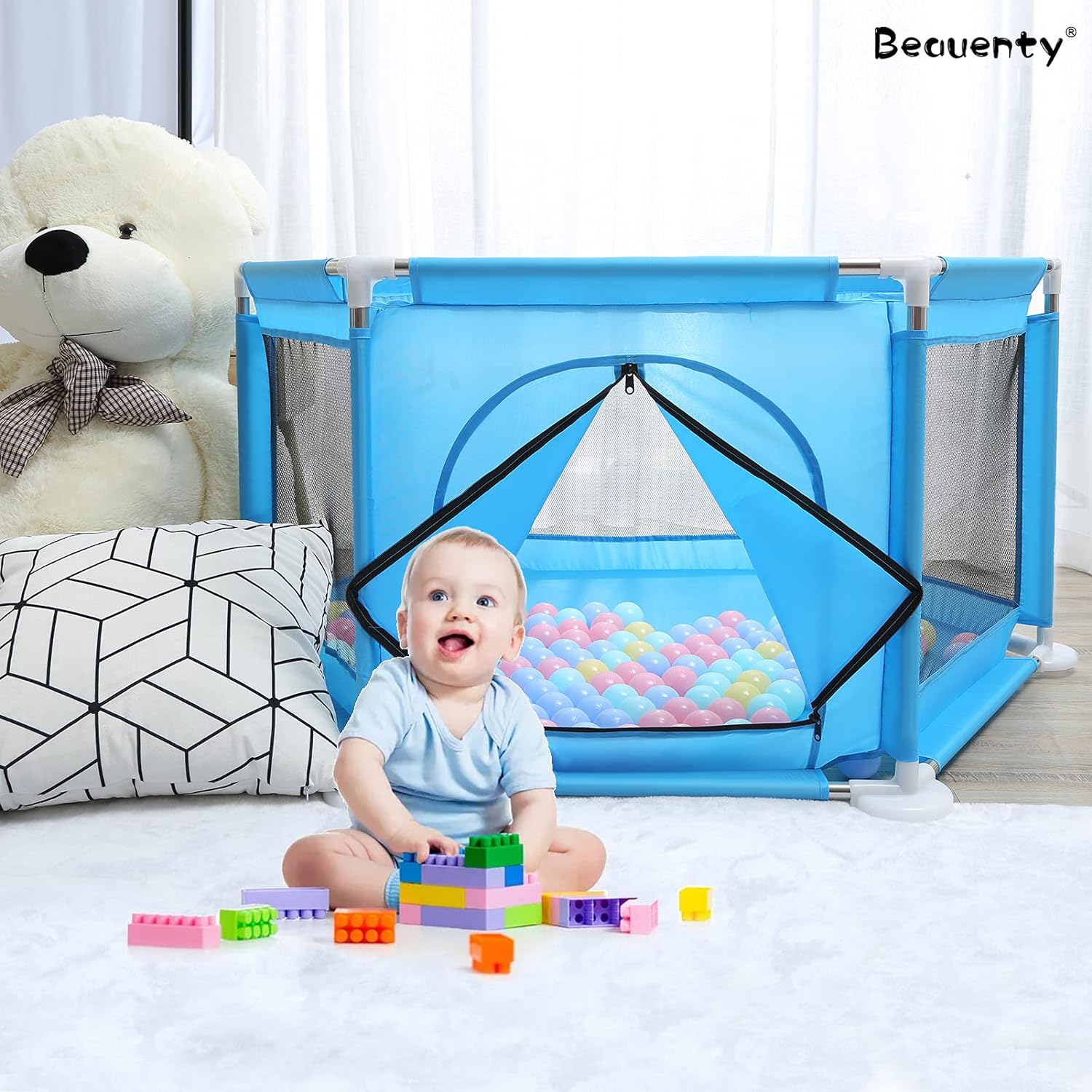 Beauenty Baby Kids Playpen Activity Center Room Fitted Floor - with 50 pcs Balls Safety Protection Care Crawling Folding Fence Toys Portable Indoors Outdoors and Parks Gifts (Blue)