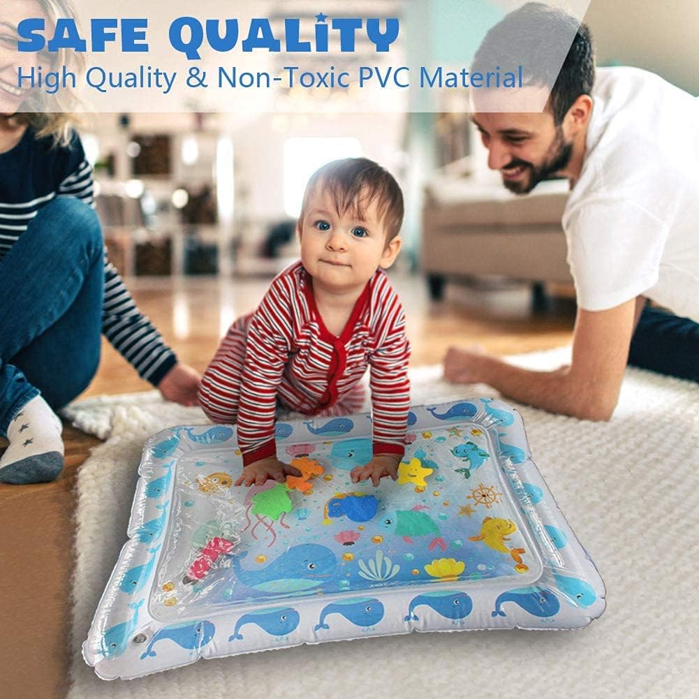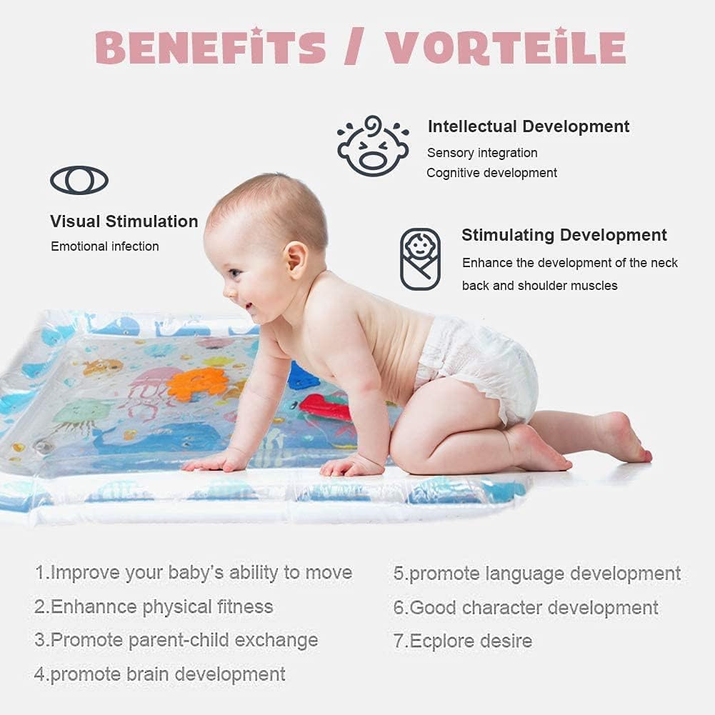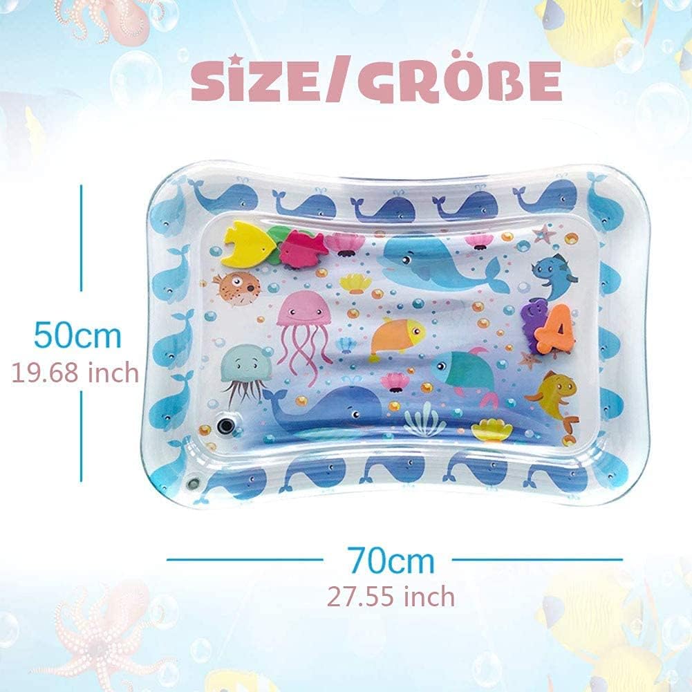 - FUN TUMMY TIME TOY:The baby water mat offers your kid the ability to discover all about cause and effect as they press the fish around from place to place with their tiny fingers! The vivid, multi-colored design of the water play mat offers great stimulation and sensory learning.
