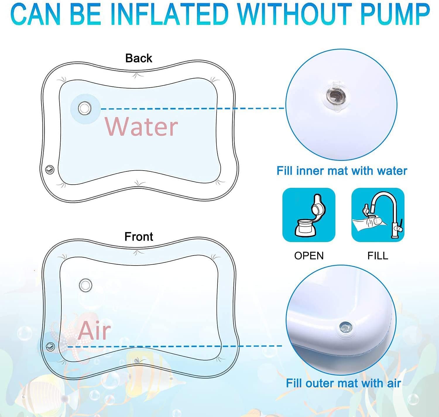 - EASY TO SETUP:Set the tummy mat by simply inflate the outer ring and fill the interior part with water, and let the fun begin! After empty the mat, you could fold or roll it up. It could be easily placed into handbag! Ideal baby toy for indoor and outdoor.