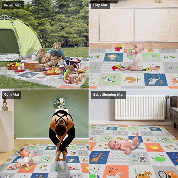 Delopik Foldable Baby Play Mat, Waterproof Foam Floor Baby Crawling Mat (150 * 180 cm) (Multi Design)