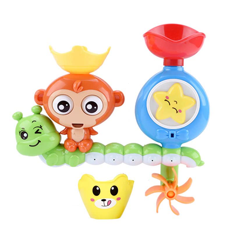 - ➤【FUN BATH TOYS】Your kids will love bathing from now on! They can play game by themselves. When children pour water into toys, the gravity of water makes the monkey's eyes and stars rotate, the monkey's mouth will spit water, and the water at the outlet of multiple pipes below forms a beautiful waterfall, which drives the windmill to rotate. Water and children form a joyful interaction!
