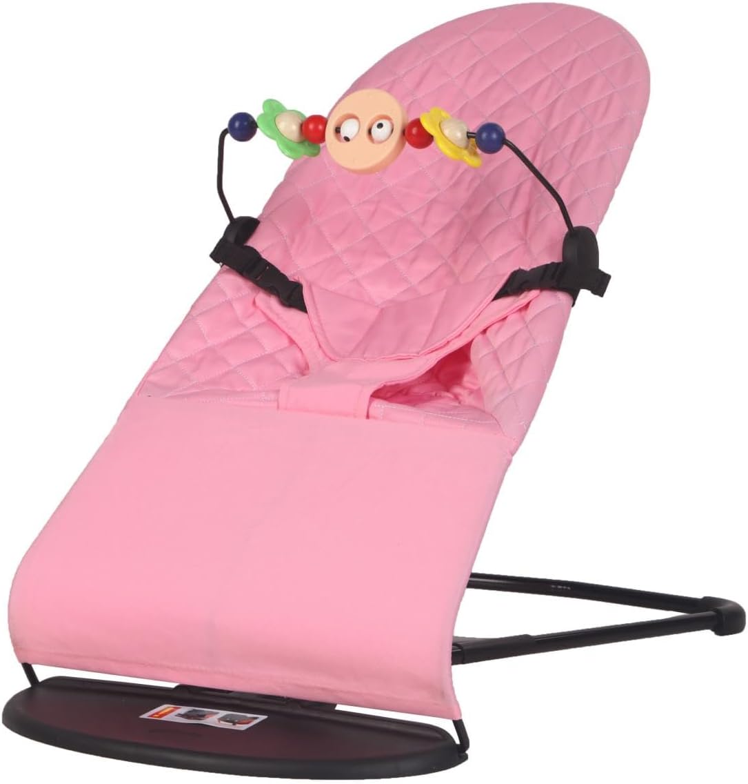 Hcosmy Baby Bouncer Infant Rocker, Portable Bouncer Seat for Babies, Vibrating Baby Bouncer, Deluxe Baby Bouncer Seat with 3-Point Harness, 0-6 Months Up to 20 lbs (Pink)