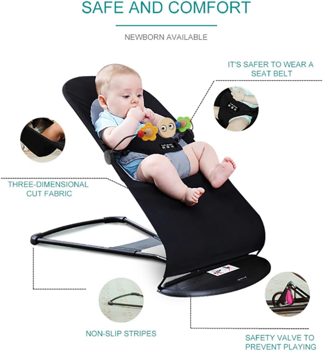 【Portable Design and Machine Washable】This portable baby bouncer to easily fold flat and fit in a carry bag. Our bouncer is made with easy-to-clean materials that are machine washable, making it simple to keep clean and hygienic for your baby.