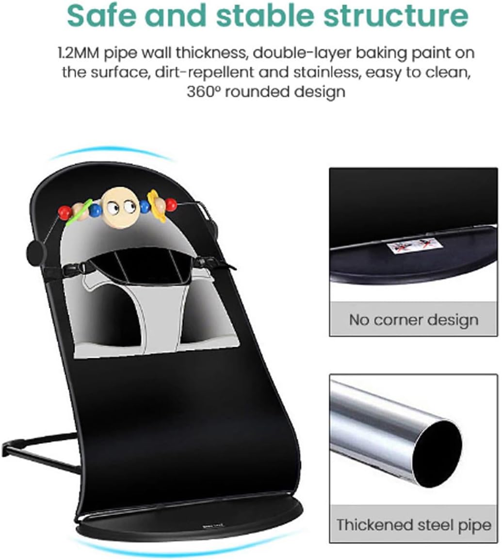 【More Safety】Rest easy knowing your baby is secure with the 3-point harness system in baby bouncer that's carefully designed to fit your baby's body and adjust as they grow. The sturdy frame supports your baby's weight and ensures maximum safety.