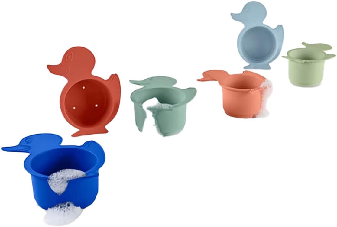 Kids Bath Shower Toy Water Duck Pool Beach Play Set of Cups Suitable for Baby, Blue/Green/Orange