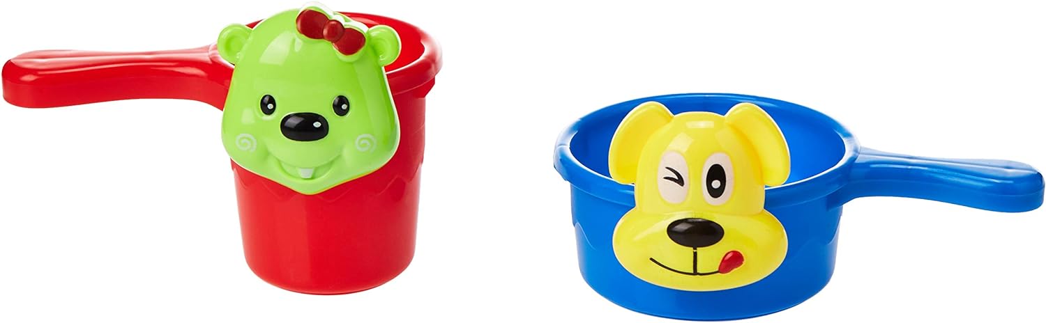 Water Spraying Water Fall. Includes- 1 waterfall, 1 small cup, 1 cartoon dog, 1big cup, 1 cartoon bear