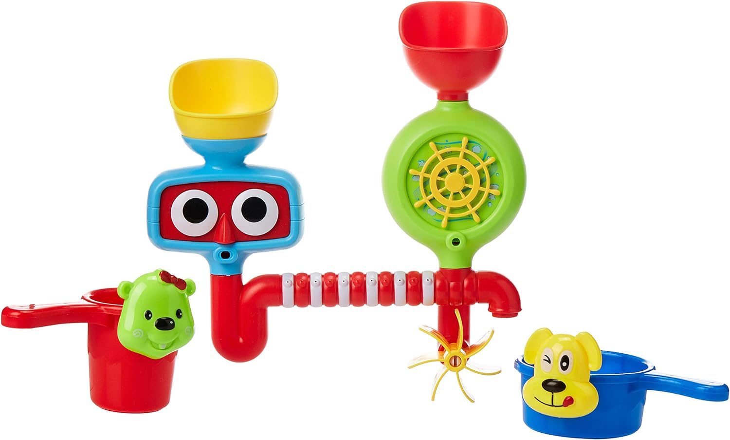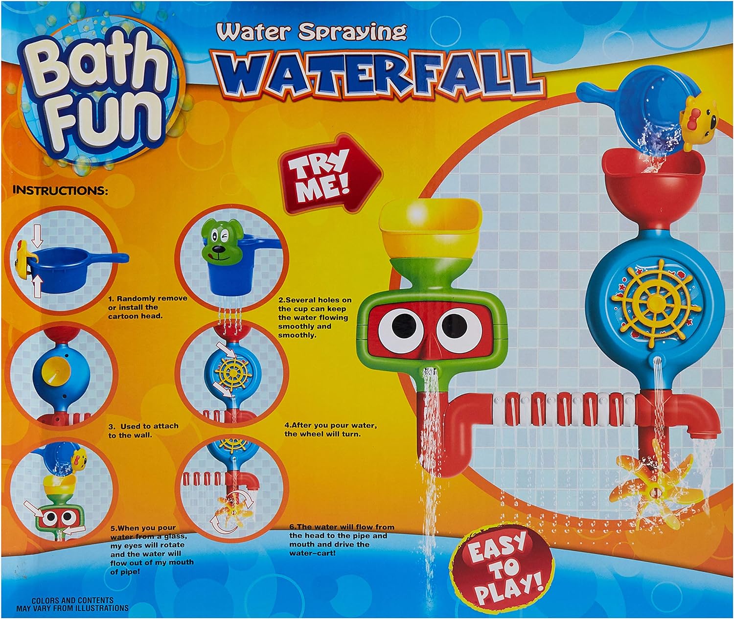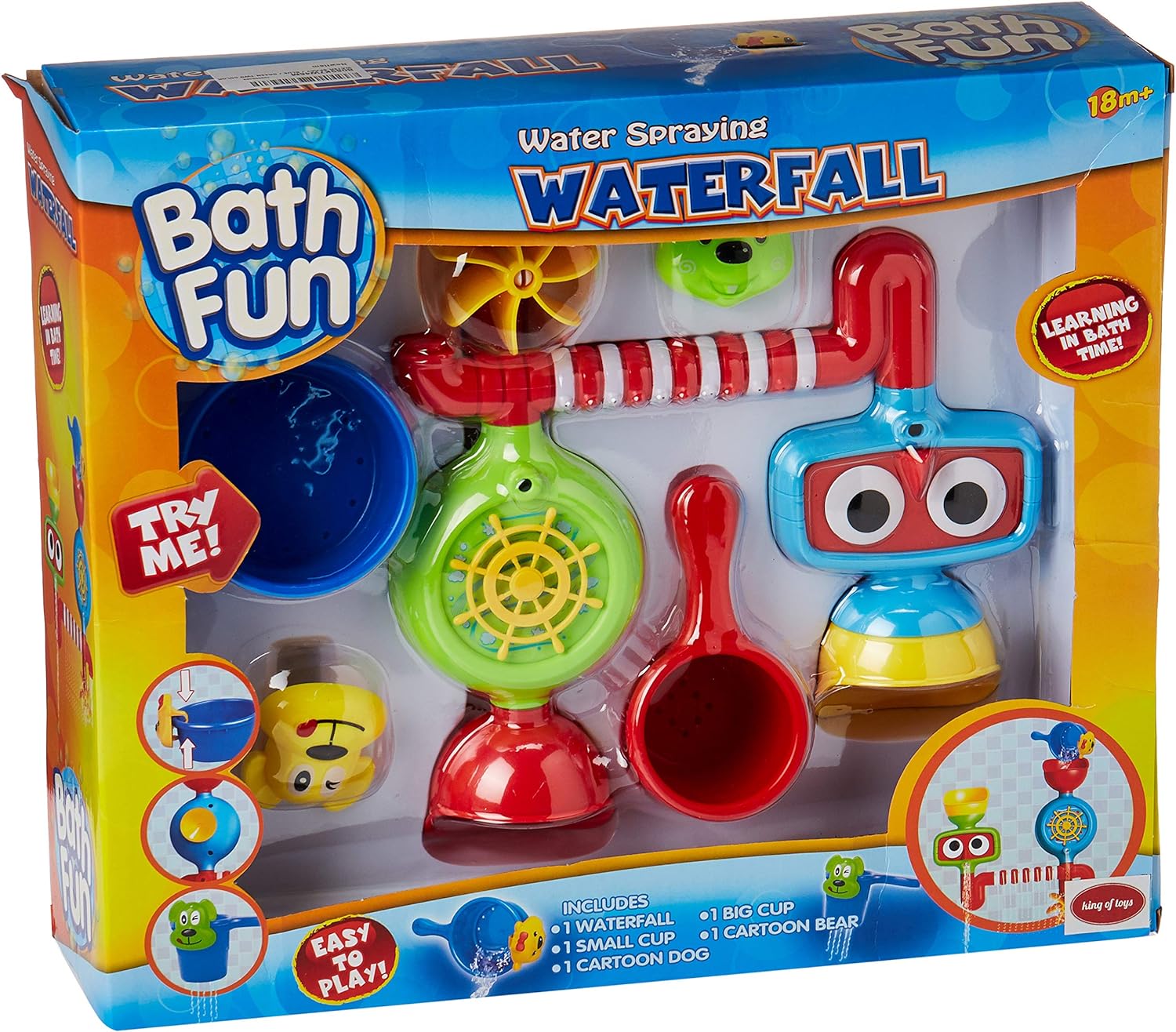 - Water Spraying Water Fall. Includes- 1 waterfall, 1 small cup, 1 cartoon dog, 1big cup, 1 cartoon bear