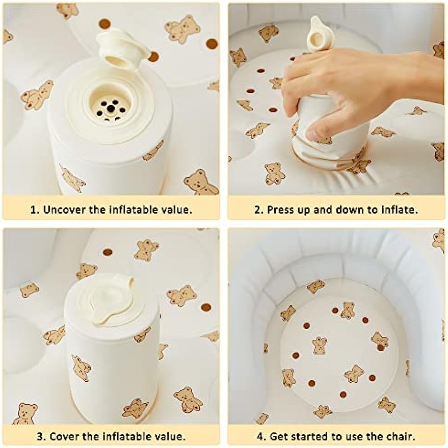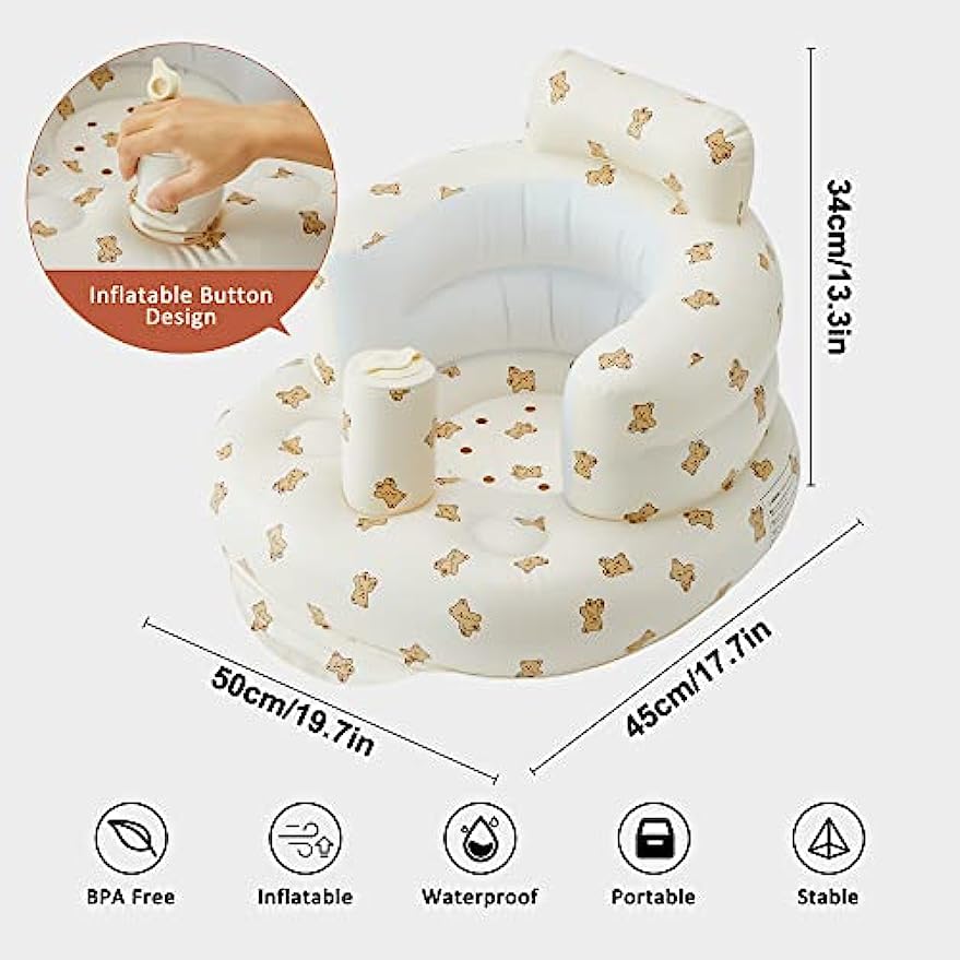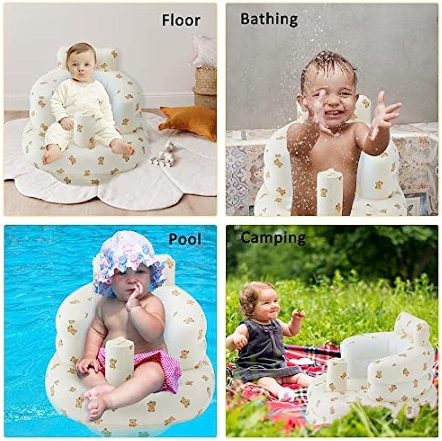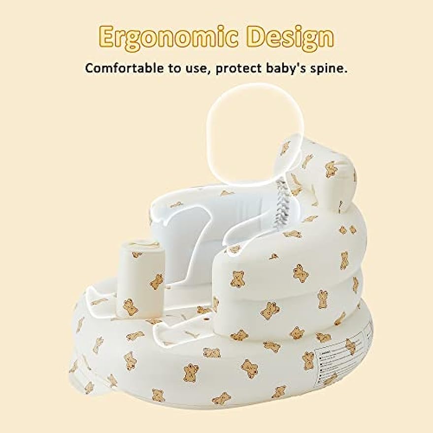 [INFLATABLE BABY SEAT]- This baby chair is equipped with built-in air pump, you can easily inflate it by pressing the button. The scientific design helps to protect baby's spine and head.