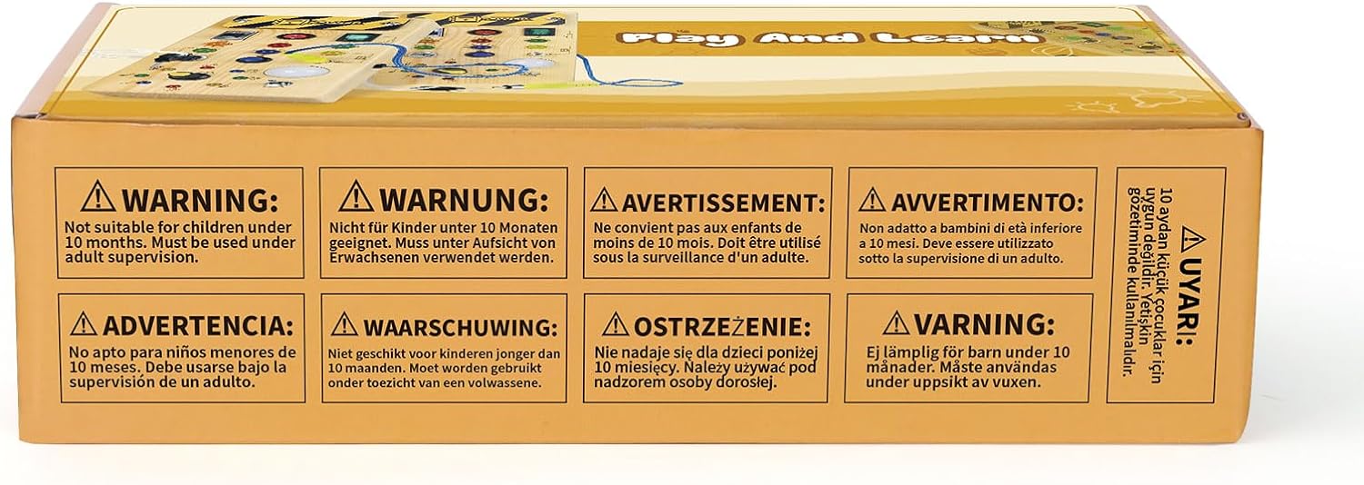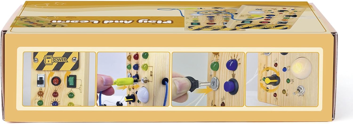 montessori toddler busy board, baby wooden busy board with 8 LED light – BUYO
