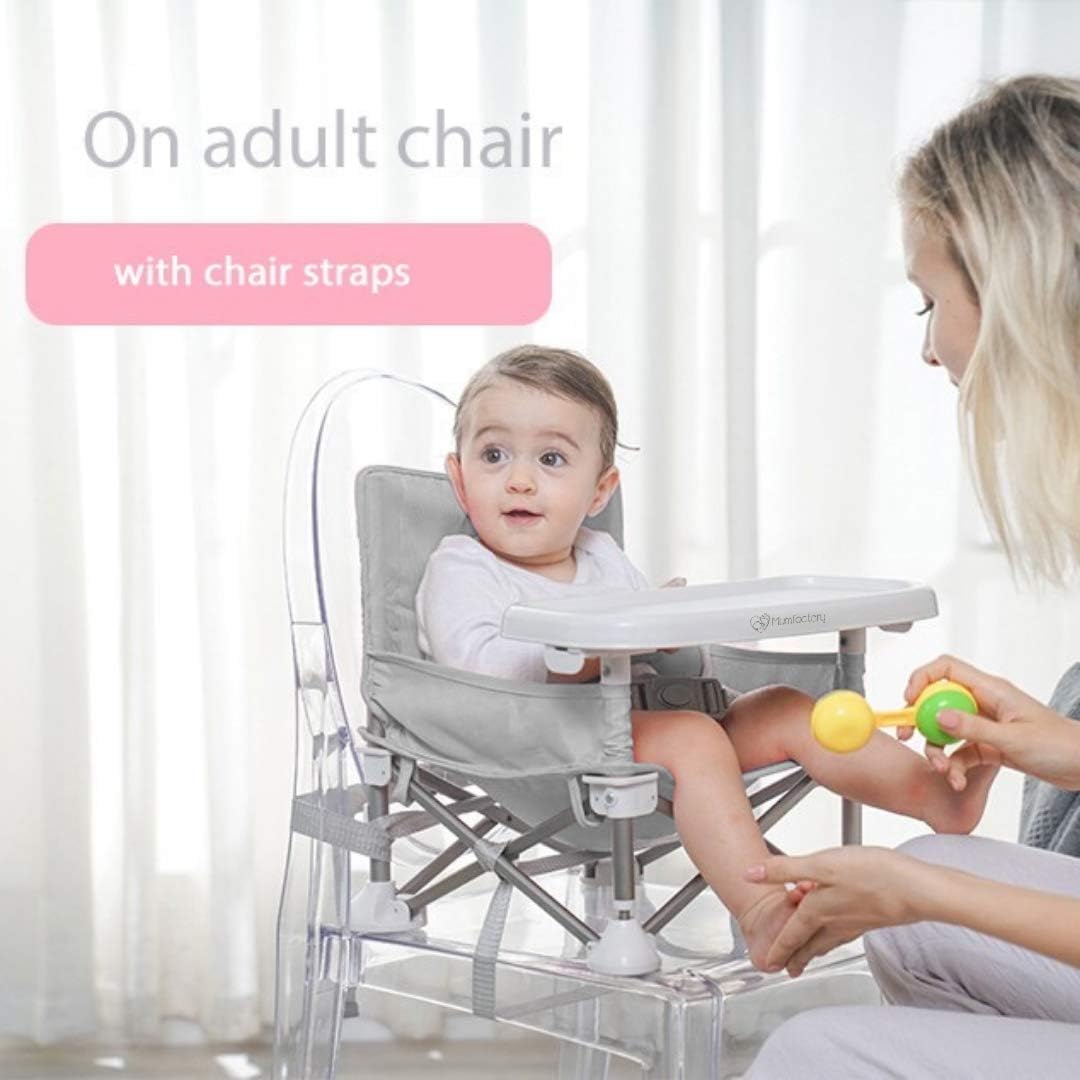 Removable Tray: When they’re finished feasting, simply remove the tray and throw in the dishwasher for a quick clean up! Whether you’re going to grandma's, diners or parks baby has a place at every table. Just pop it open and secure with included chair straps.