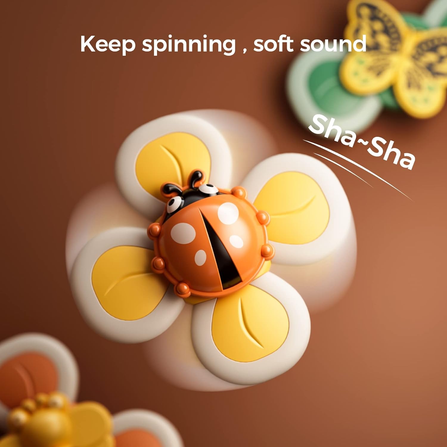 • 🐟Color design: The top of the suction cup adopts 3 colors and cartoon patterns | Bee | Ladybug | Butterfly, bright colors and cute animal shapes, petals sound when rotating to attract the child's attention, And act as a decompression artifact to relieve children's emotional stress.