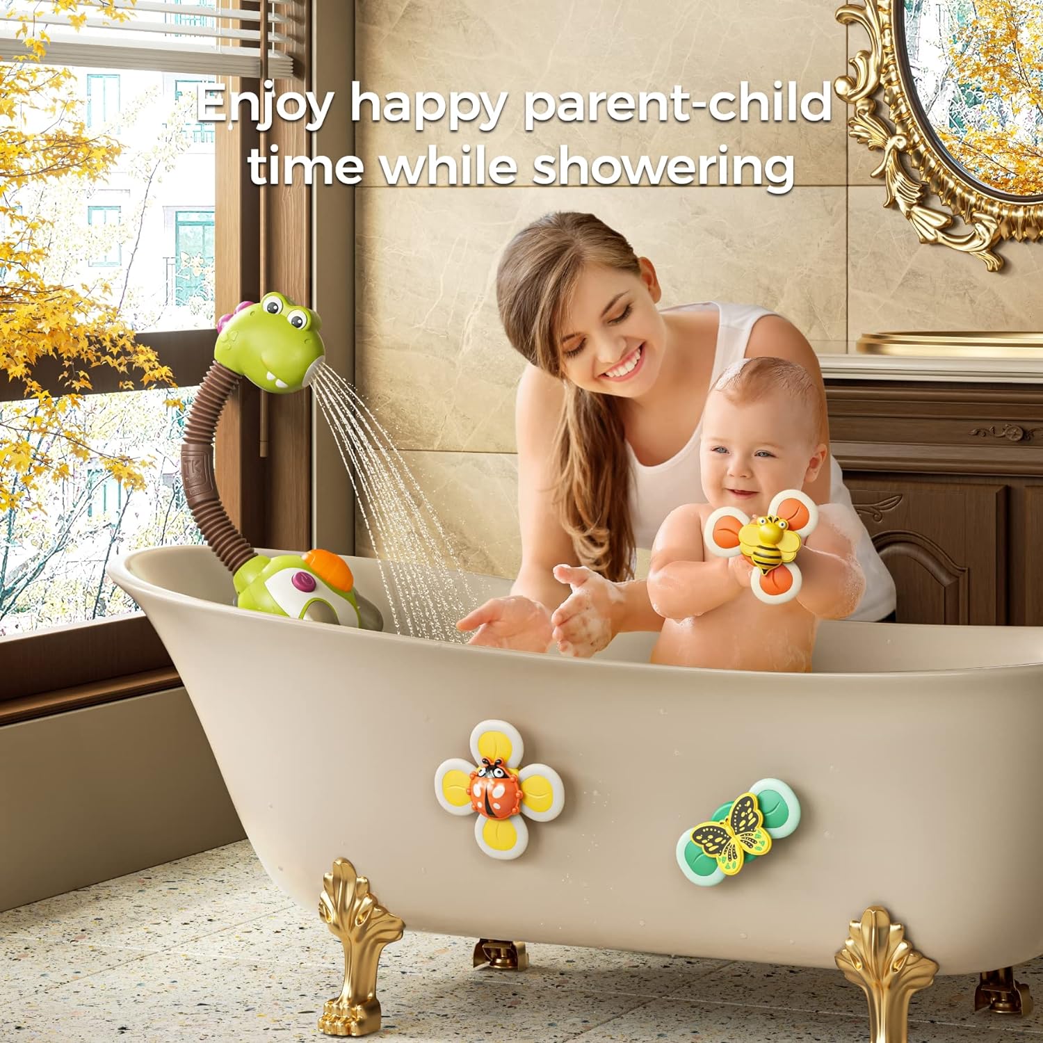 • 🐟Toys Gift Box : Our bath toys are packaged with a cute zebra bath shower head(+ three transparent suction cups to hold it),suction spinners toys:A bee+ A butterfly+A ladybug.Rich and varied accessories make bath time more fun and relaxed.