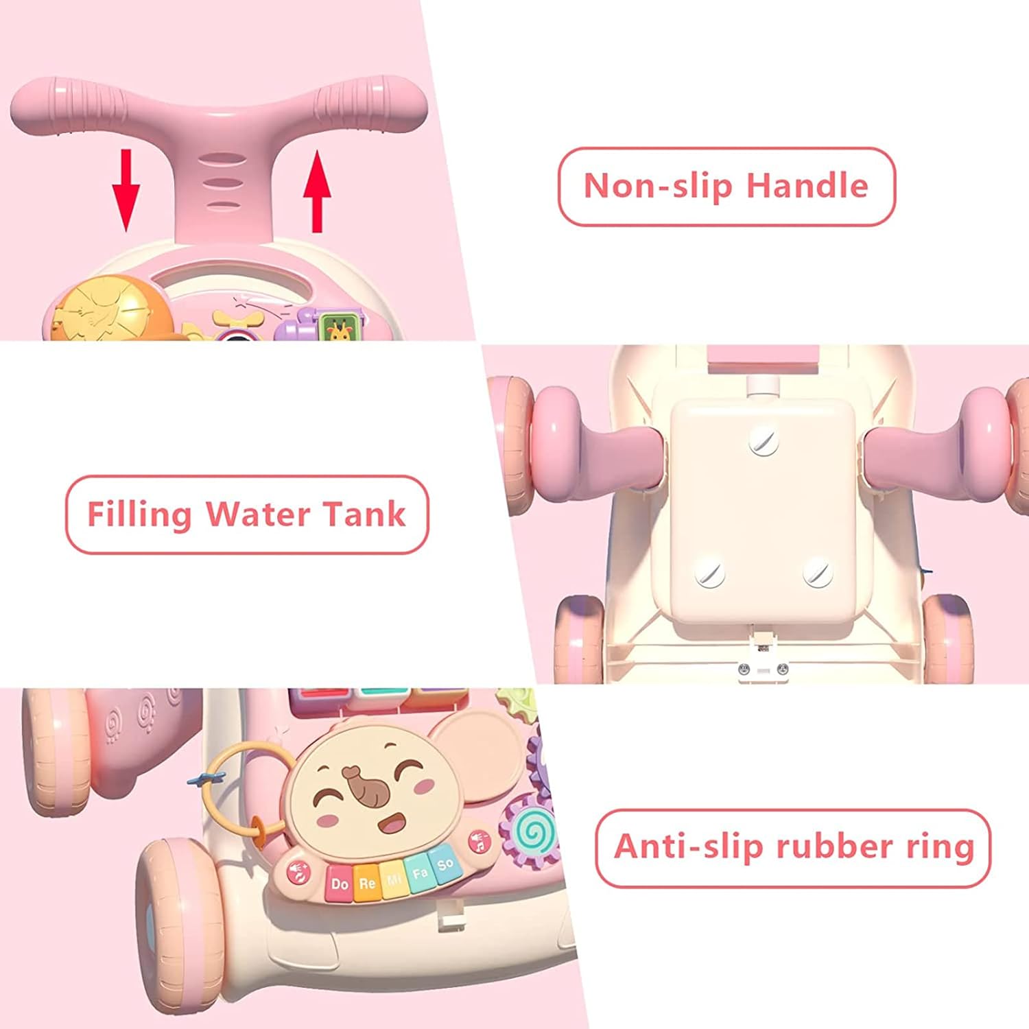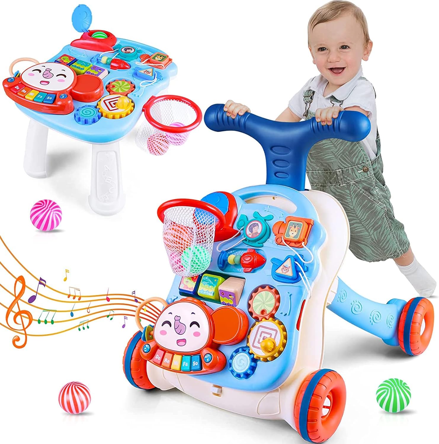 【Upgrated Music Activity panel】- Our Mobile Activity Center is on the Front side for this fun walker, it includes multiple functions to entertain a baby and help out parents. with the Removable Activity Center you can have fun with your baby whatever place in your home. You can leave him alone in the living room or make your baby learn more with our panel. Activity table with Music learning bench, ball sets and STEM skills. Increasing your baby’s sensitivity for colors, shapes, music numbers!