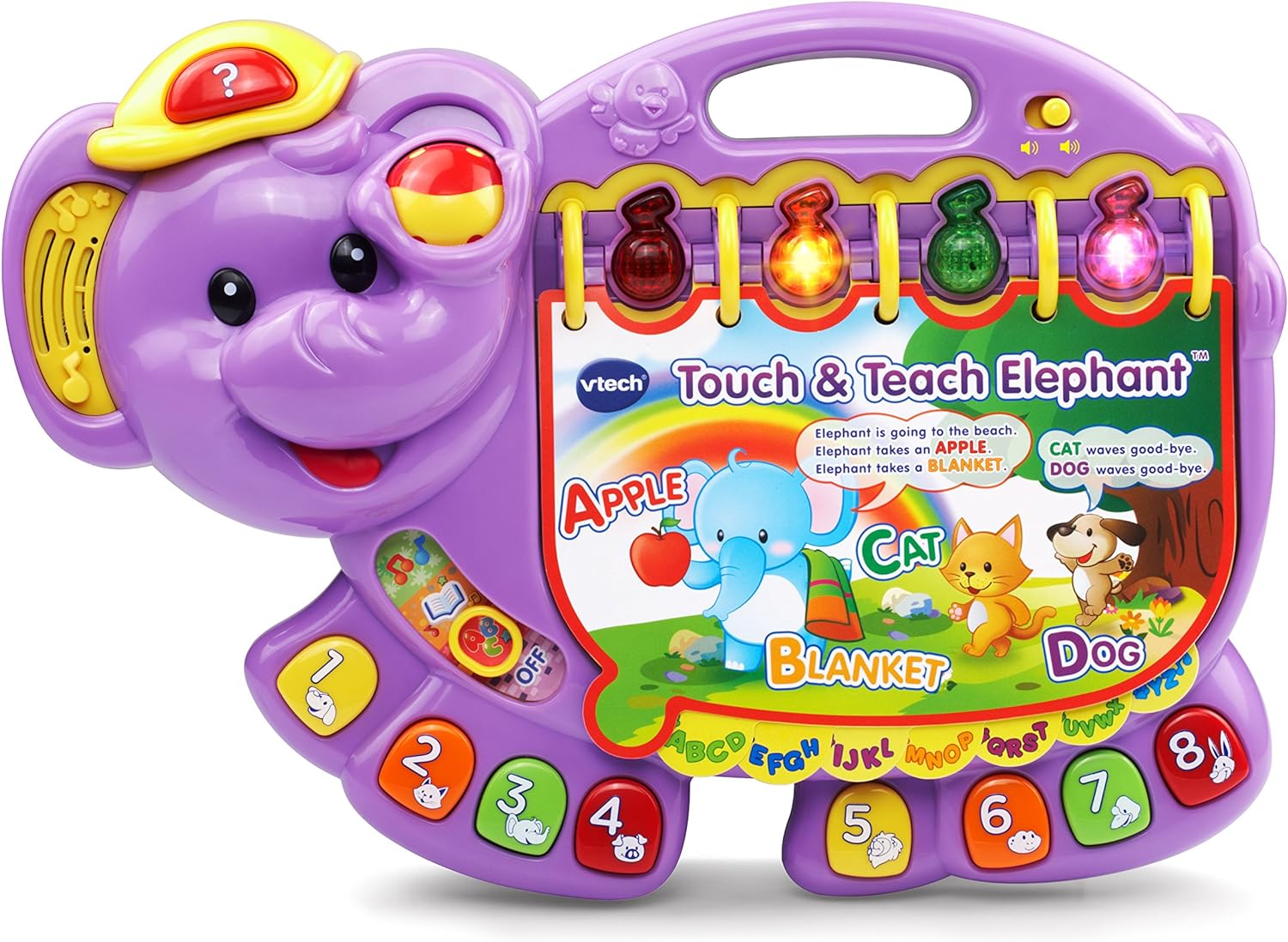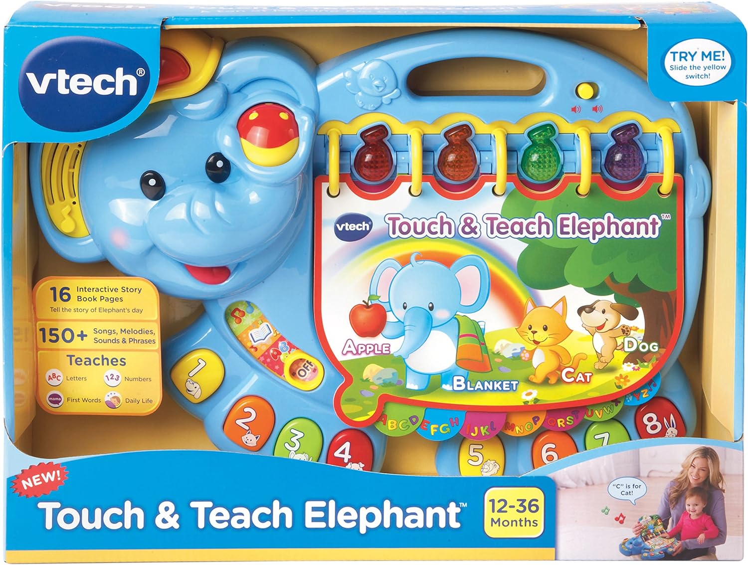VTech - Touch & Teach Elephant Book | 150+ Songs & Melodies, 16 Interactive Story Books | Teaches Letters, Numbers, First Words | 12-36 Months – Blue