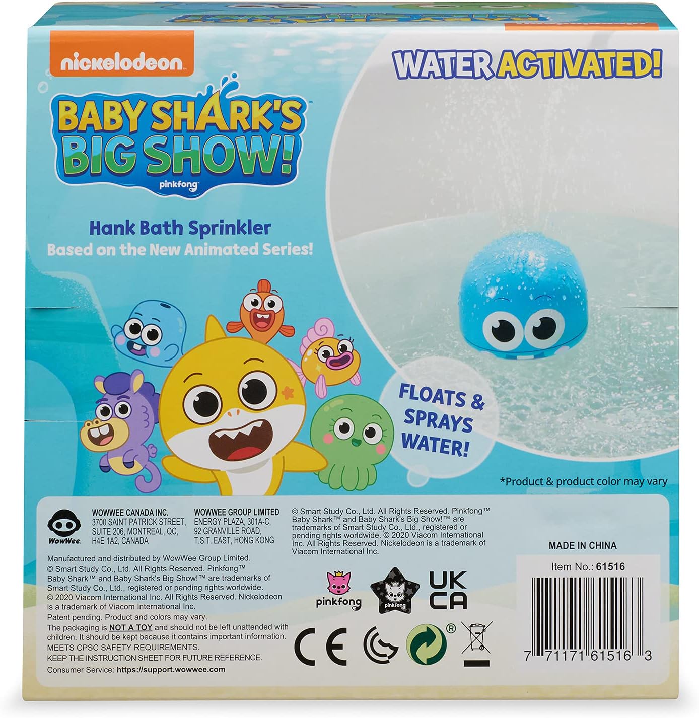 - SWIM-SATIONAL! This Hank Bath Sprinkler floats and sprays water, perfect for developing curiosity and imagination as your child swims and plays with Baby Shark. A great way to encourage tactile senses and independent play under parent supervision!