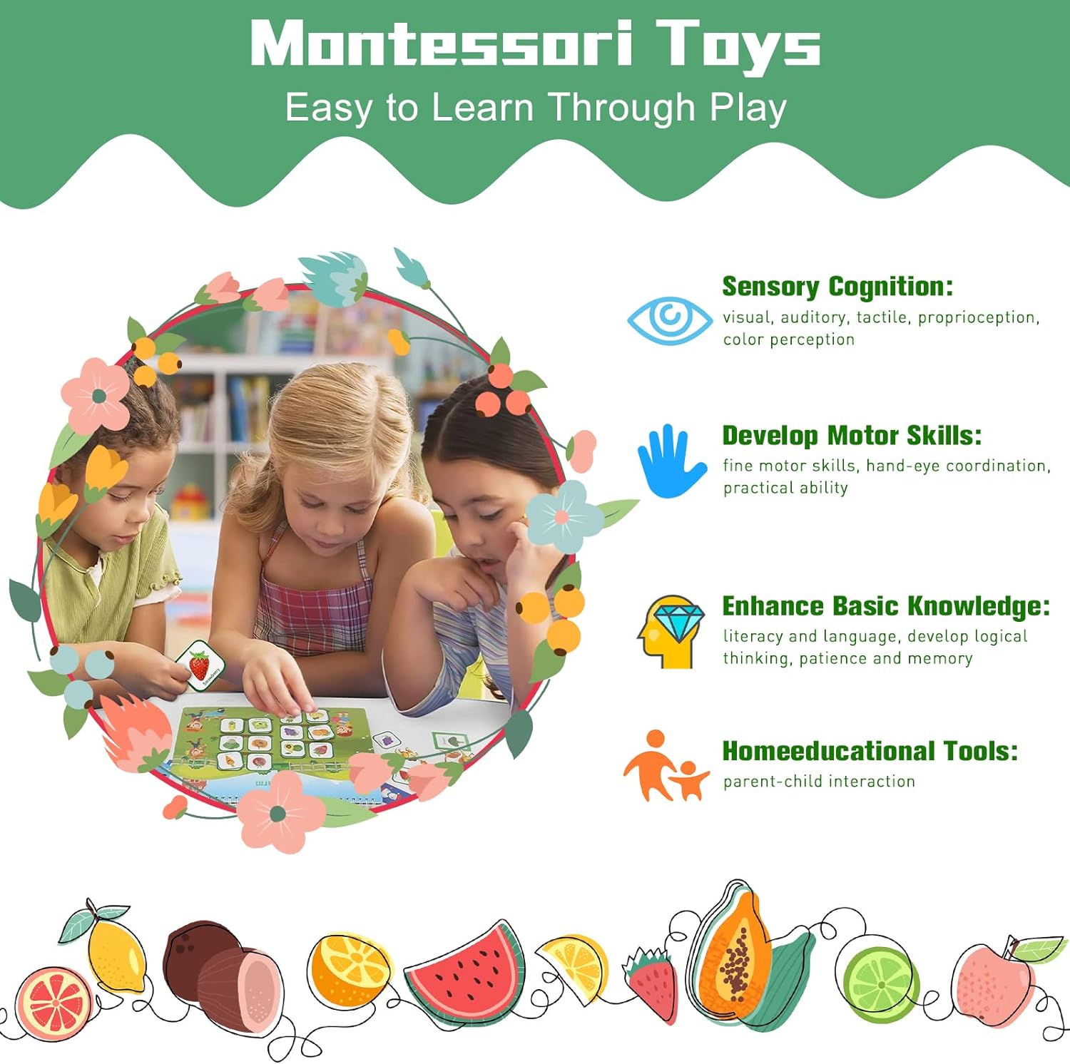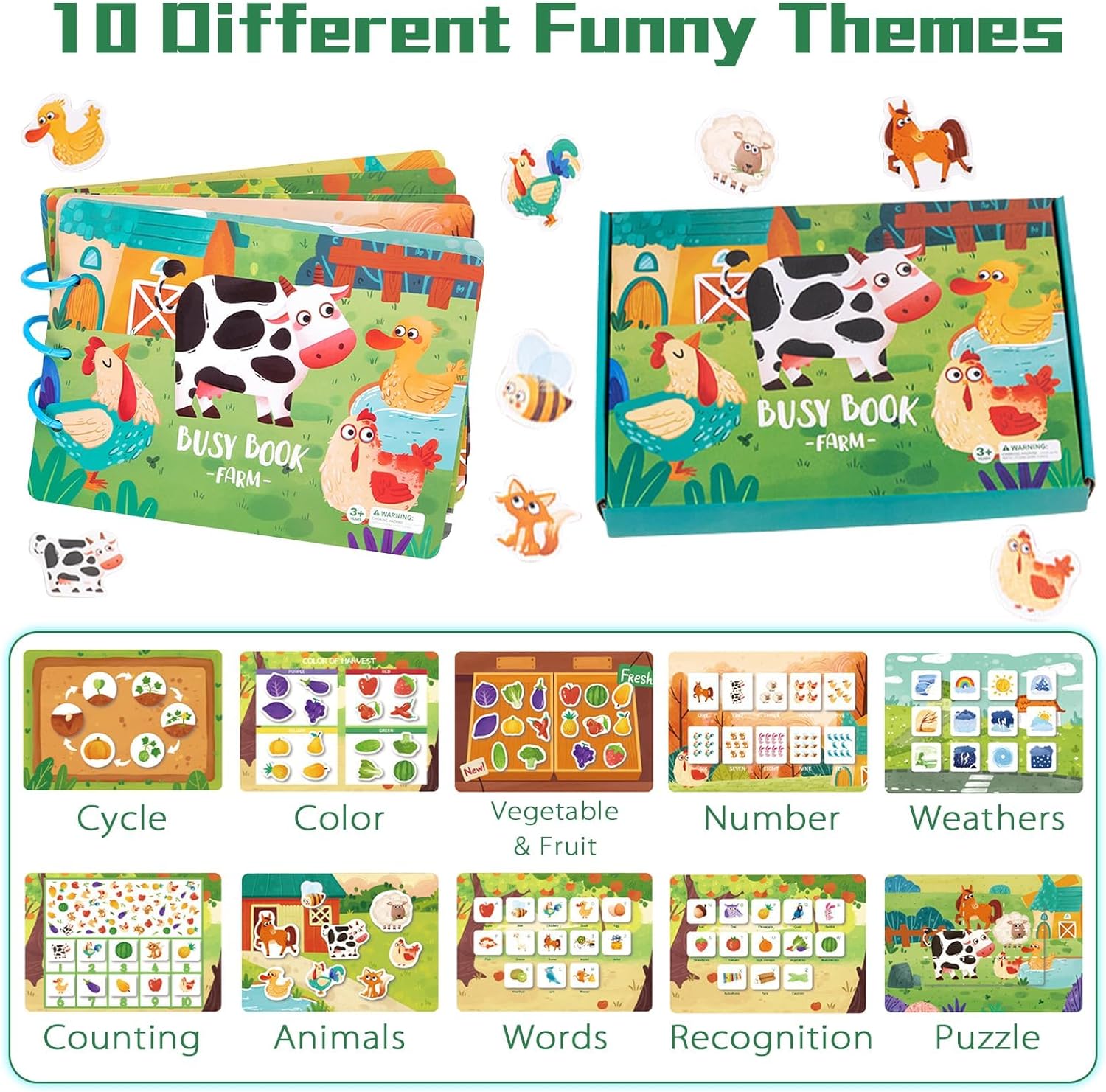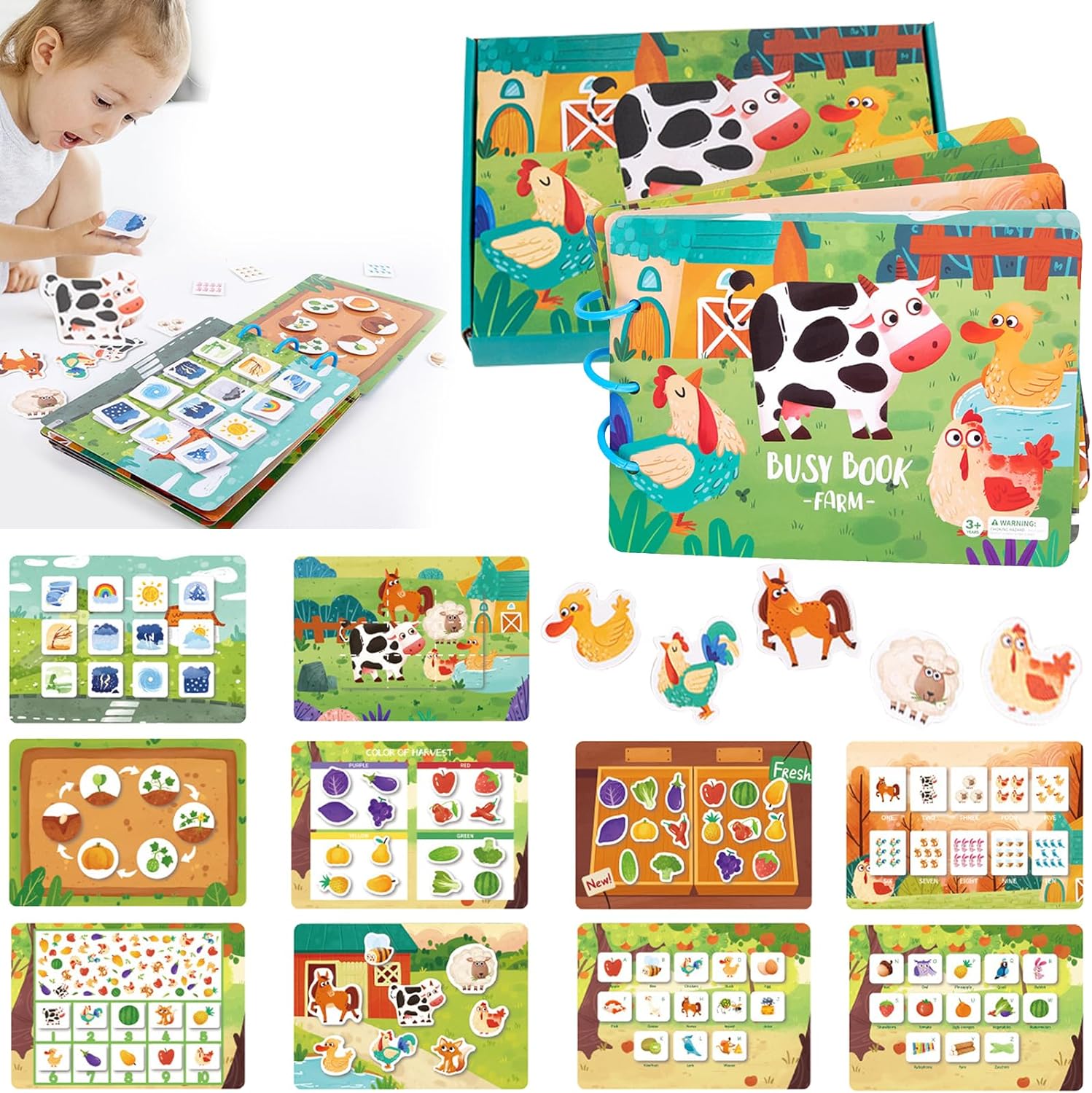 - 🍒【Montessori Toys】This book adopts Montessori style education and is an excellent tool for young children to learn through games. It helps to develop cognitive, fine motor, language, problem-solving skills, memory, and eye hand coordination abilities.