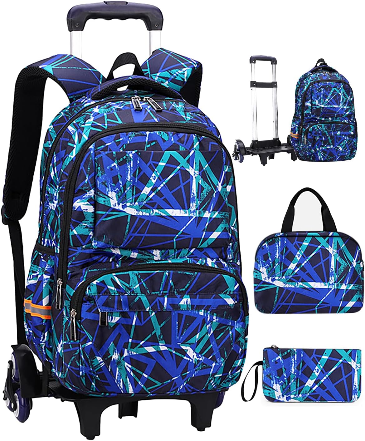 • Durable & Water-R esistant Material : This school bag used anti-splash water nylon fabric, lining is polyester, durable, anti-scratch, and water-resistant, better protect the items in the kids backpack from getting wet, and easy to wipe down. This boys rolling backpack with sturdy zippers, triangle sewing reinforcement, adjustable padded straps and durable wheels and handles, can last the entire academic year