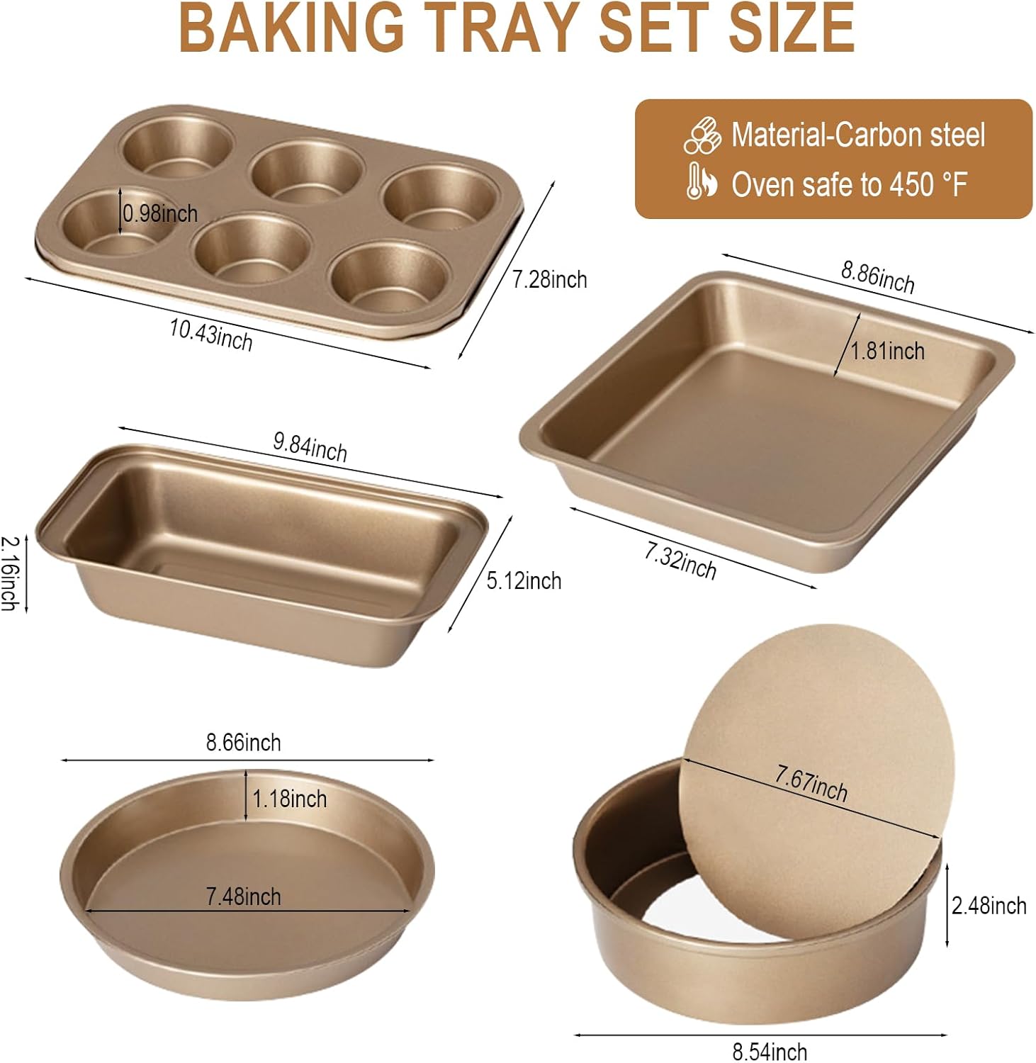 Material: The premium baking pans set is made of carbon steel material, strong and resists warping, and uniform heat, oven safe to 450 °F.