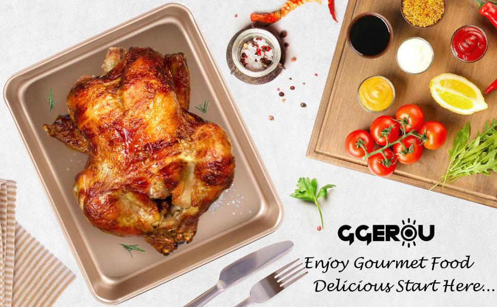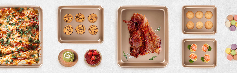 🍰VERSATILE BAKING PANS: Deep baking pan sets nonstick is perfect for savory baking,sheet cakes,sheet pan dinners,brownie,roasting vegetables,even use as serving tray.Lifetime guaranteed for our rectangular baking pans once ordered.