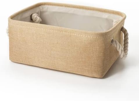 PREMIUM QUALITY: This small fabric storage basket is made of thick durable linen &Thicken Environmental EVA, sturdy metal rod frame around the top keep the basket shape, durable and high quality material make this storage bins last a good long time. Lined with a thin muslin fabric. It is easy to clean, just wipe with a damp sponge or cloth.