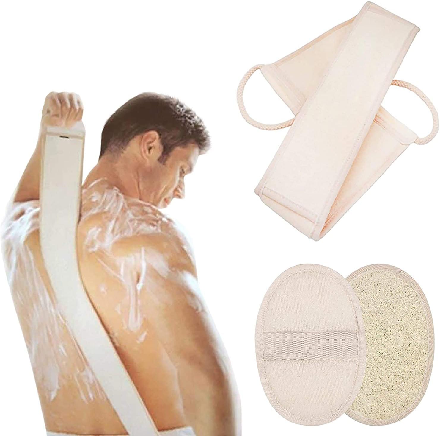 Package includes:The body cleanse kit contains 1 back scrubber and 2 loofah sponge pads, made of natural loofah + ultra-fine towel fabric, swells soft, chemical-free, suitable for most people. It can effectively exfoliate, grease and deep dirt, without damaging the skin, so the results will be smooth and super soft skin .