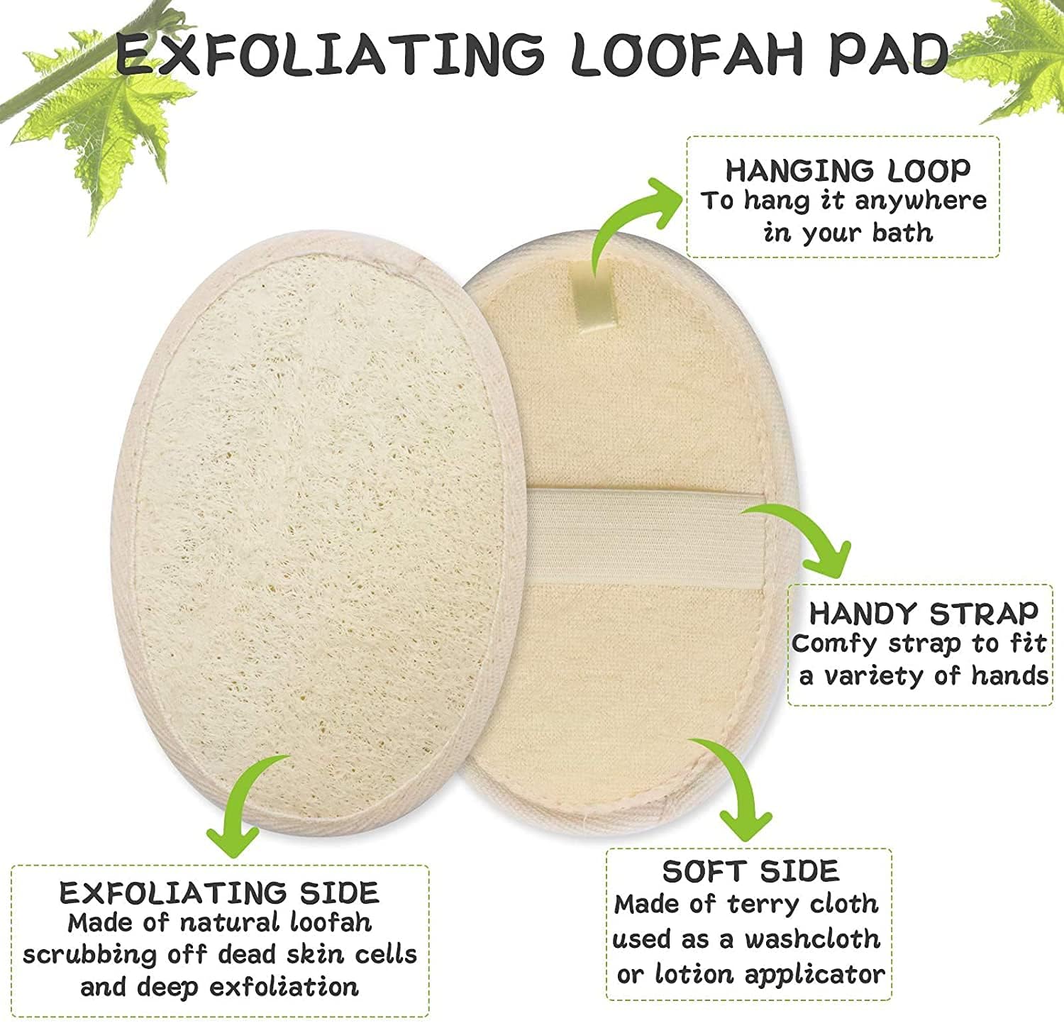 Rejuvenate Dull Skin:Natural loofah body scrubber pads set gentle exfoliating properties buff away dead surface skin, promoting greater hydration and enhancing absorption of your skin care products.