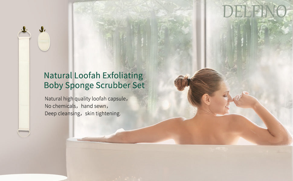 DELFINO Loofah Exfoliating Back Scrubber, Back Scrubber for Shower wit – BUYO