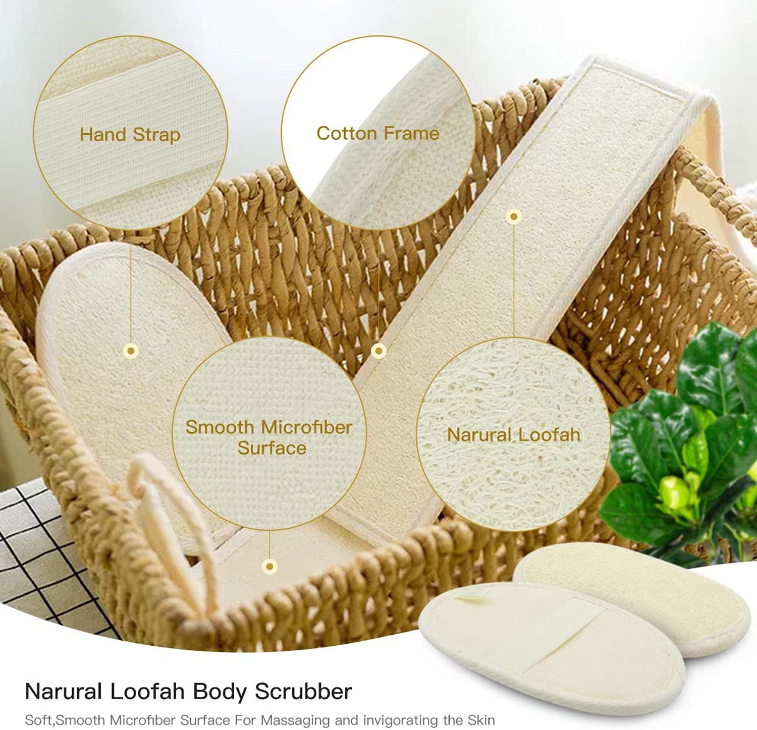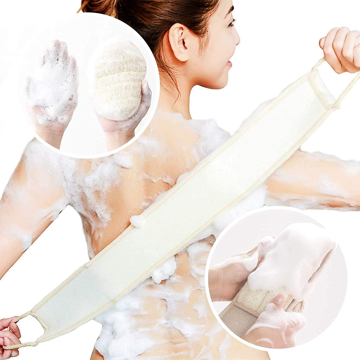 【Most Valuable Bathing Combos】: You will get a natural Loofah Back Scrubber (31.5*4 inch) to clean your full-body and exfoliating sponge pads sweep away dead cells for any detailed places. Sweep away dead cells to give you a more radiant appearance from head to toe