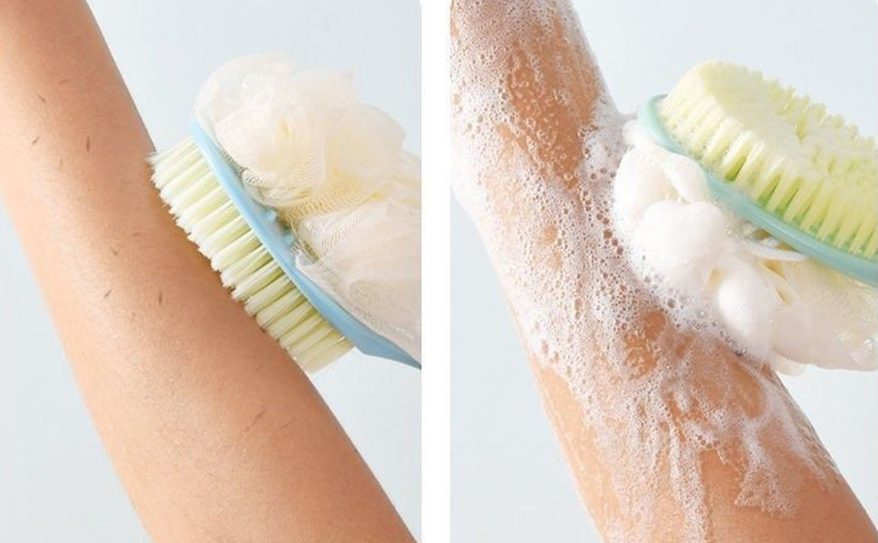 - [Clean Skin] The head of the bath brush has a wider effective cleaning area, and the bristles are soft and won't hurt your skin. The brush can remove dead skin, stimulate blood circulation, and improve skin quality.