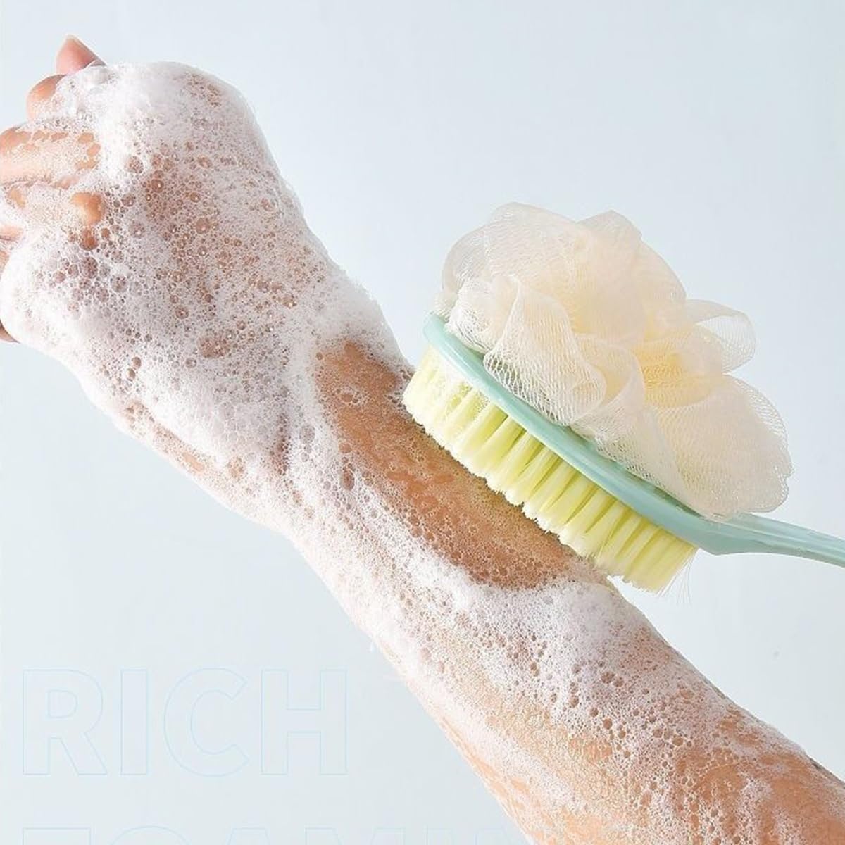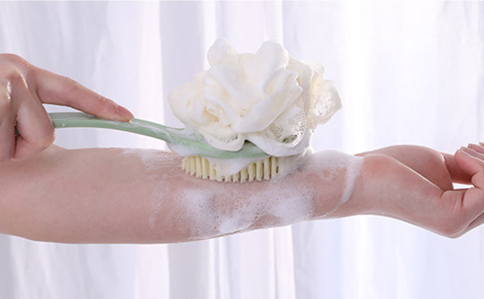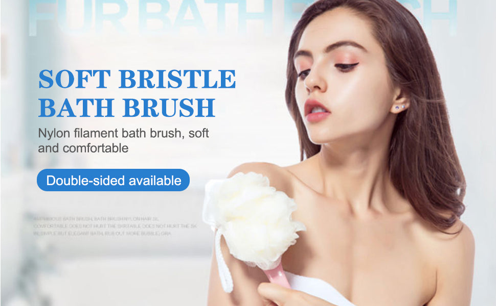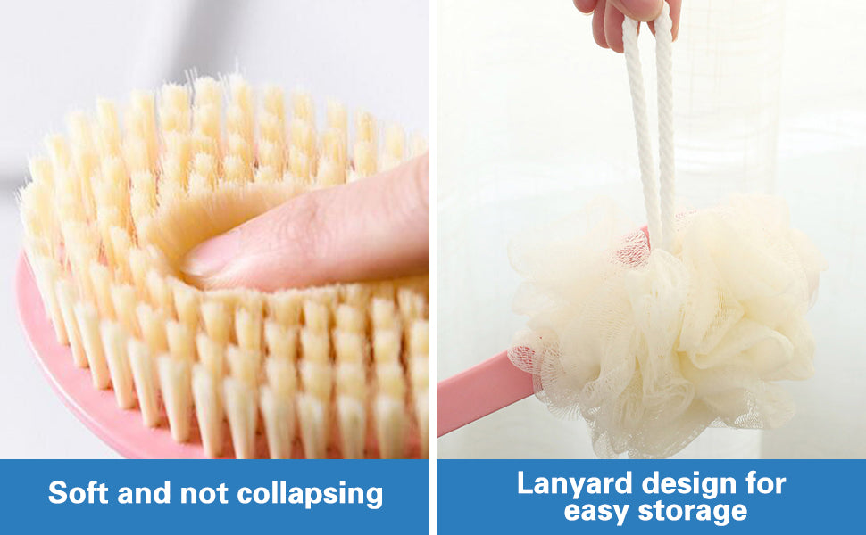 - [Long Handle] The bath shower brush is designed with a longer handle to help reach each part of your body, allowing you to easily clean the back and the feet. The long handle is suitable and convenient for the elderly, pregnant, and overweight people to use.