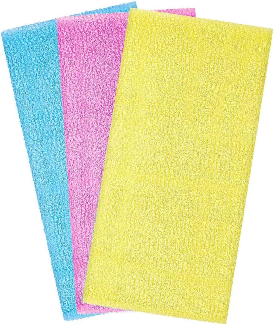 Exfoliating Bath Washcloth, Exfoliating Towel Microabrasion Washcloths Nylon Japanese Bath Towel Wash Cloth for Body Beauty Washcloth Loofah Exfoliating Body Scrub Back Scrubber, 3 Pack