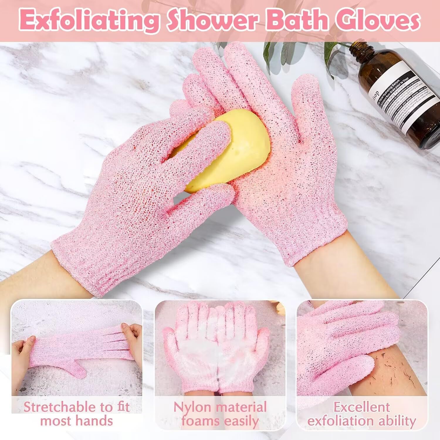 🛀 STRETCHABLE TO FIT YOUR HANDS: Our exfoliating gloves for body to remove dead skin are elastic flexible to fit most hands, the elastic wrist makes sure the exfoliating mitt stay in place.