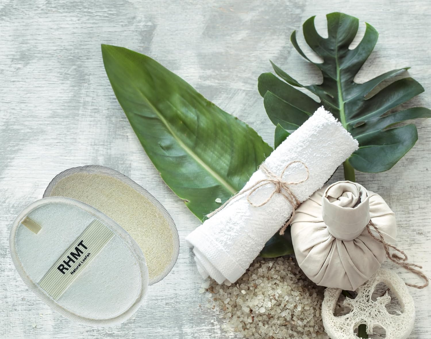 RHMT Natural Loofahs Sponge, 3pcs, Exfoliating Body Scrub, Dead Skin Remover, Loofa For Men & Women.