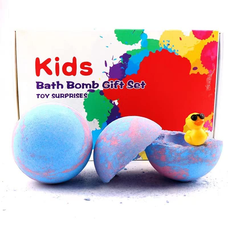 Bath Bomb Gift Set 6 Pack ,Organic Bath Bombs for Kids with Toy Inside, Safe Handmade Fizzy Balls for children, Birthday Gift for Boys & Girls