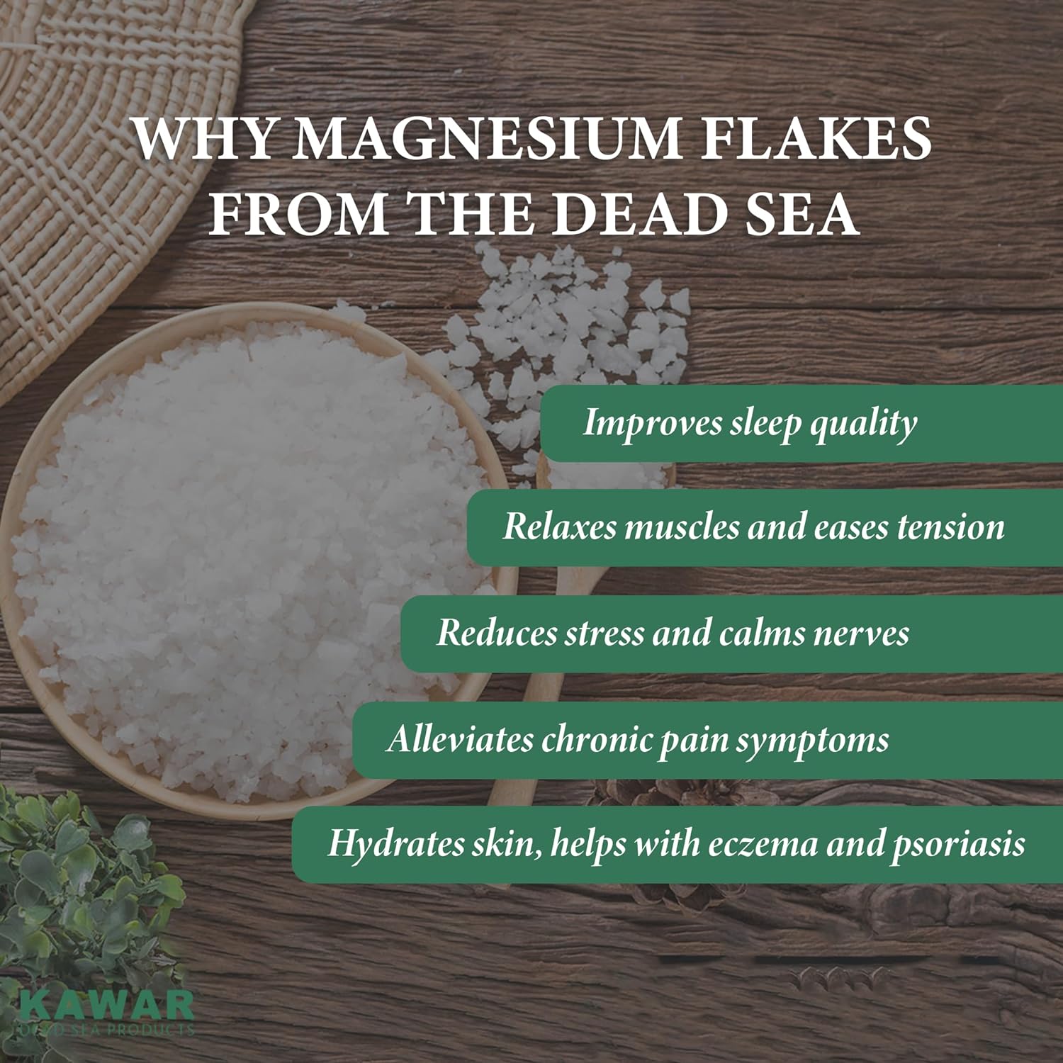 Kawar Dead Sea Bath & Foot Soak, Unscented Magnesium Salt Flakes for Muscle Pain, Relaxation, Stress Relief, Leg Comfort, Eczema, and Psoriasis, For Women & Men (600g)