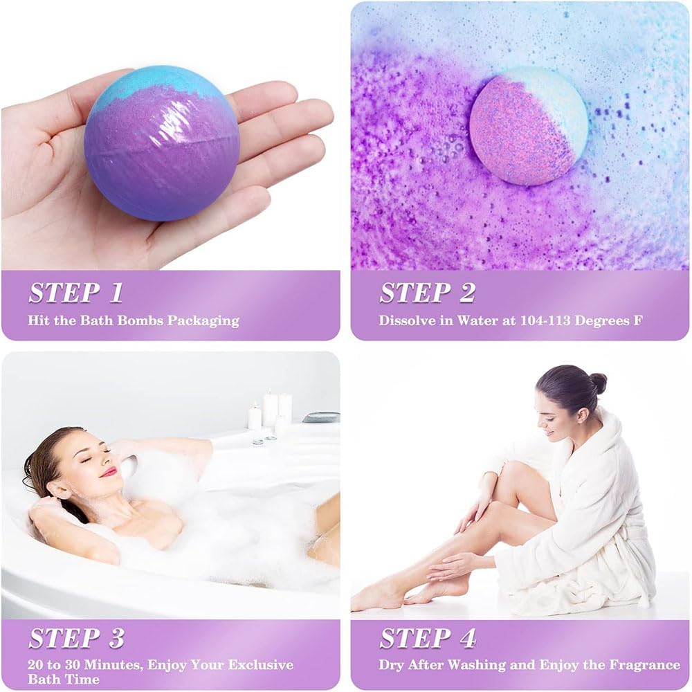 🛀【Easy to Clean & No Pigment Residue】This bath bomb gift set is made with natural ingredients. It's easy to rinses off after use, leaving no pigment residue, so your tub or skin won't be stained. In addition, individual packaging ensures hygienic use and easier storage.