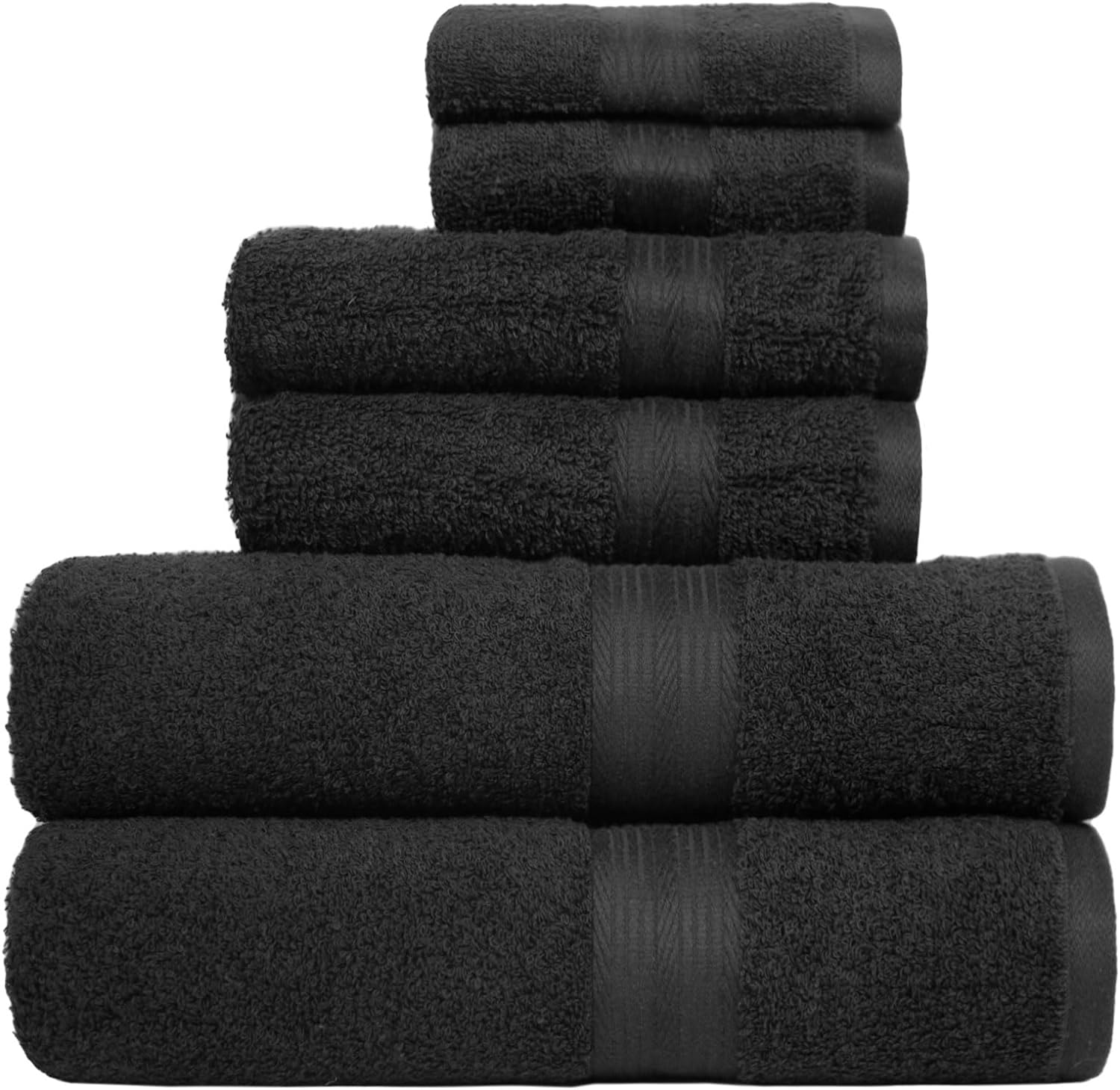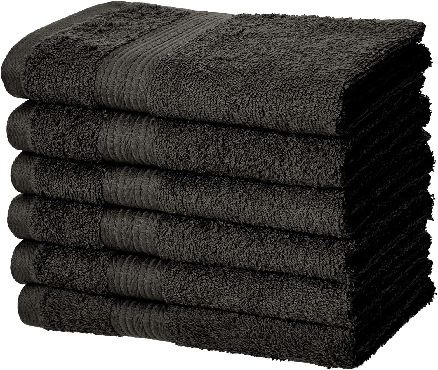 AmazonBasics 6-Piece Fade-Resistant Bath Towel Set, ABFR, Cotton, Blac – BUYO