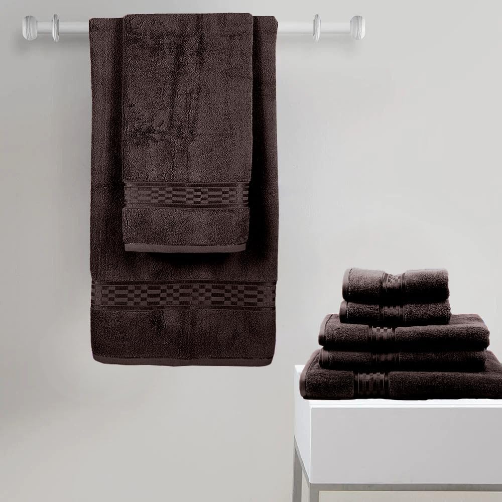 BYFT Home Ultra (Brown) Premium Hand Towel (50 x 90 Cm - Set of 2) 100% Cotton Highly Absorbent, Hotel Quality Bath linen with Checkered Dobby 550 Gsm