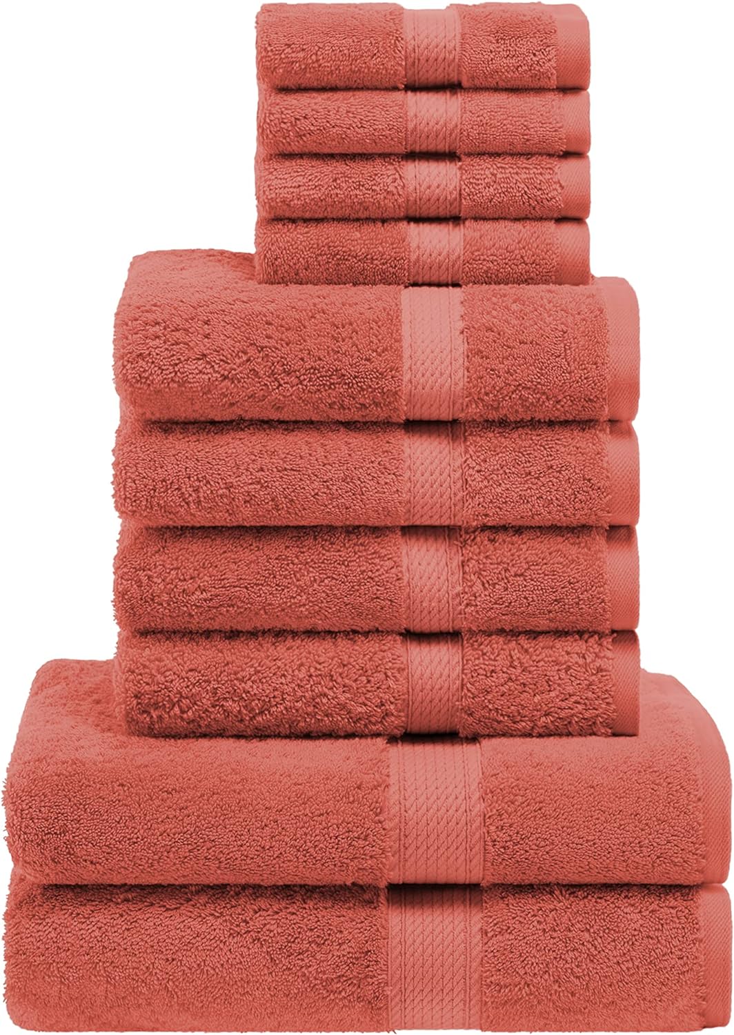 Superior Egyptian Cotton 800 GSM Bath Towel Set, Includes 2 Bath Towels, Luxury Plush Essentials, Absorbent Quick Dry Towels, Guest Bathroom, Apartment, New Home, Shower, Hotel Quality, Coral