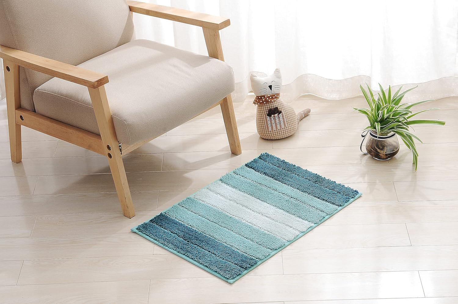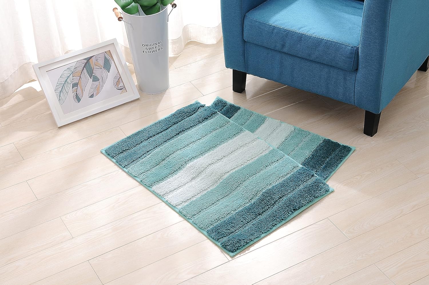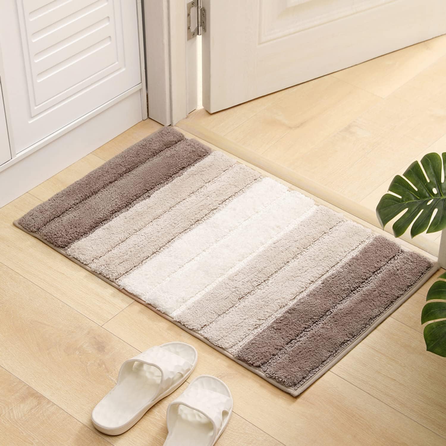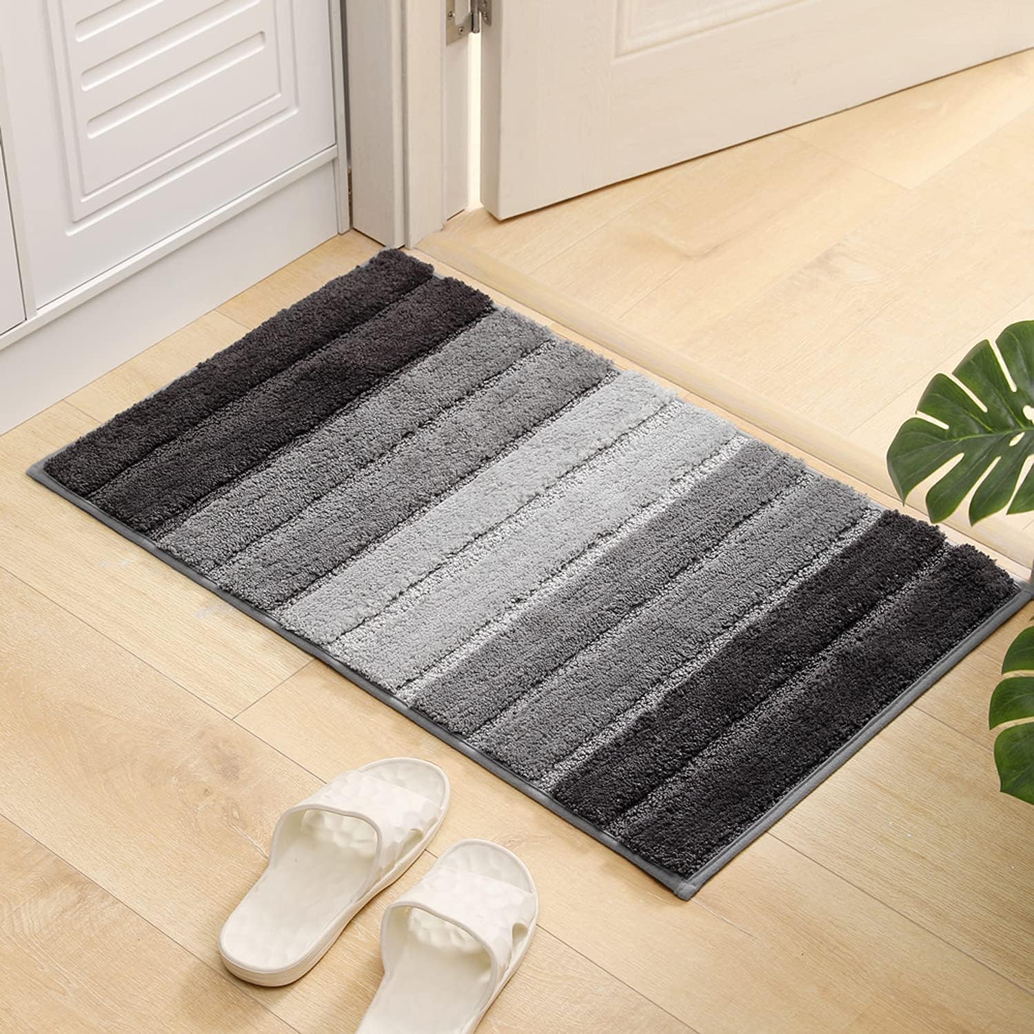 [Multiple Uses]--20 x 32 inches shaggy microfiber mats unique gradient color stripe design provides a fashionable accent to any area within the home. Are widely used in the bedroom, bathroom, living room, mud room, entryways, hotels, feet-spa club, and by bathtub and sink.