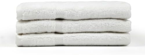 Bath Hand Towels Set Premium White 100% Cotton Pack of 3 Hotel & Spa Quality Bath Towels for Bathroom by NUNUSO (White)