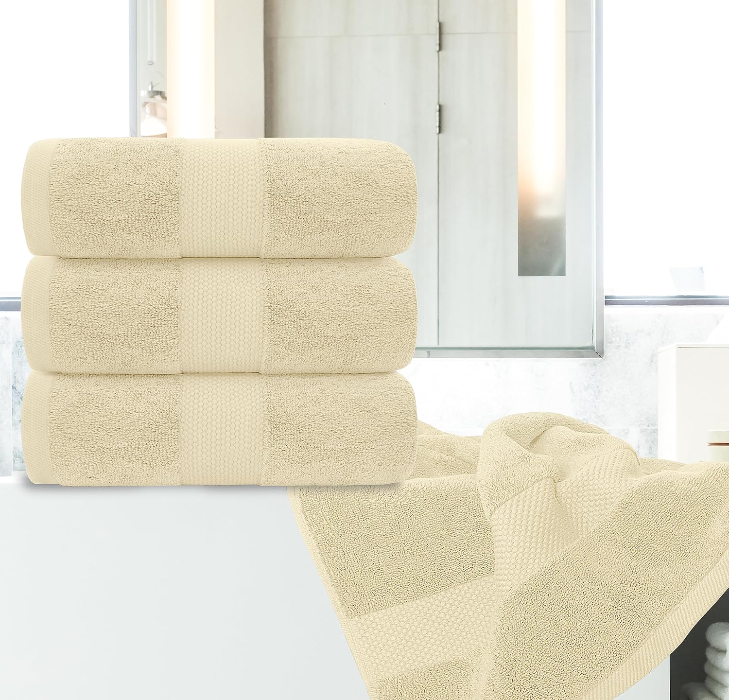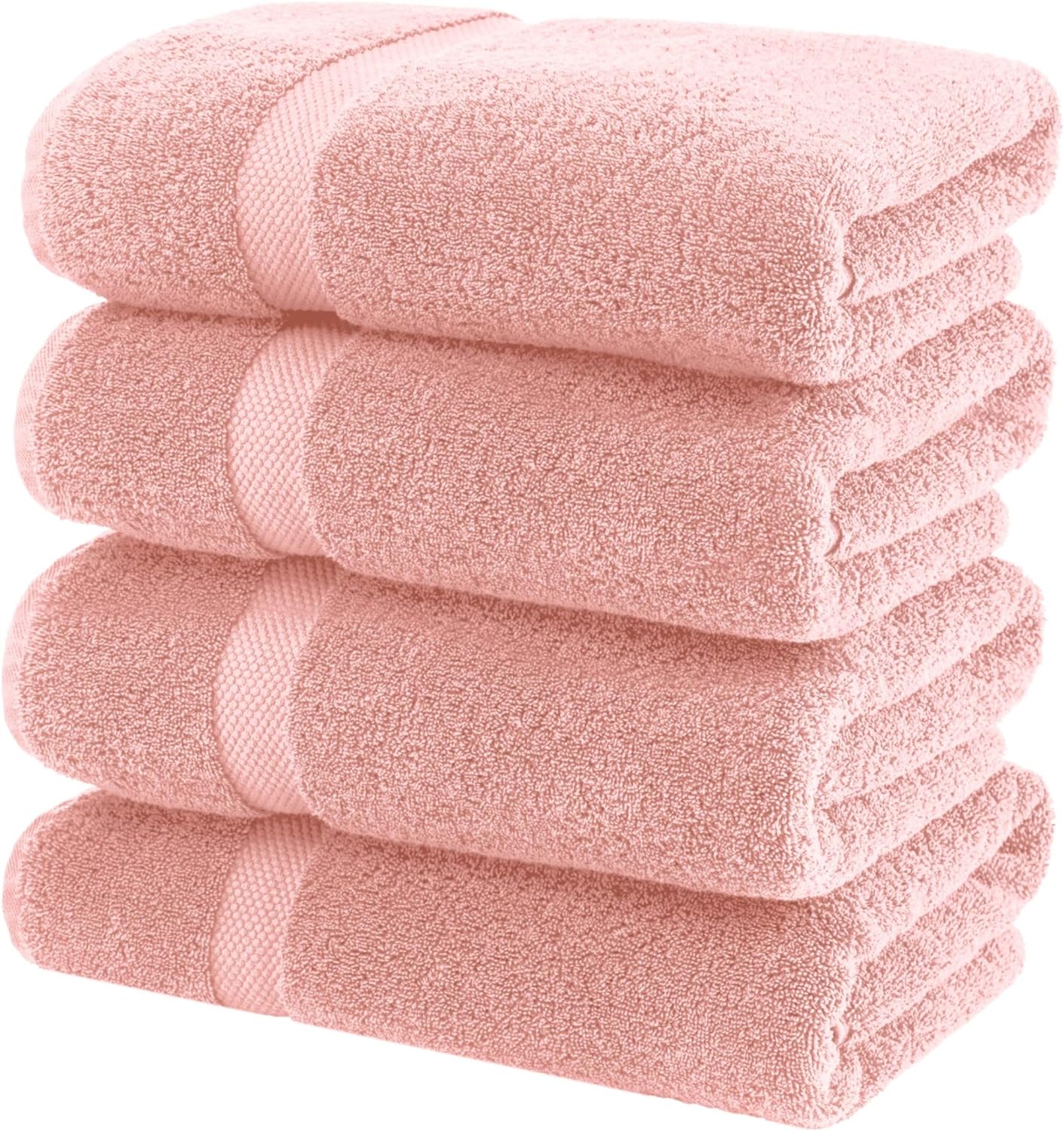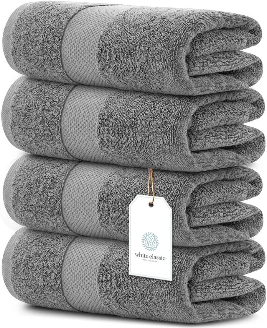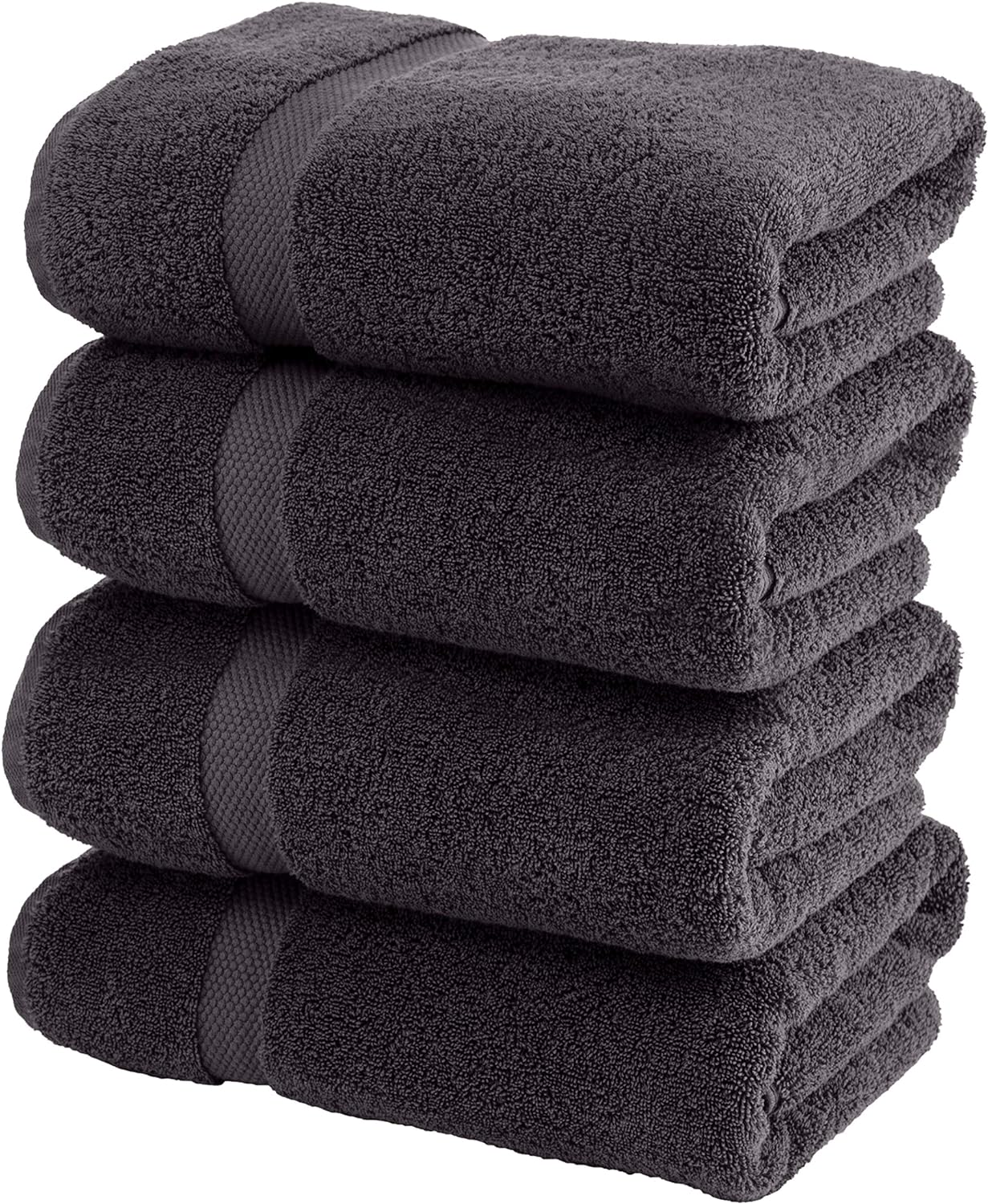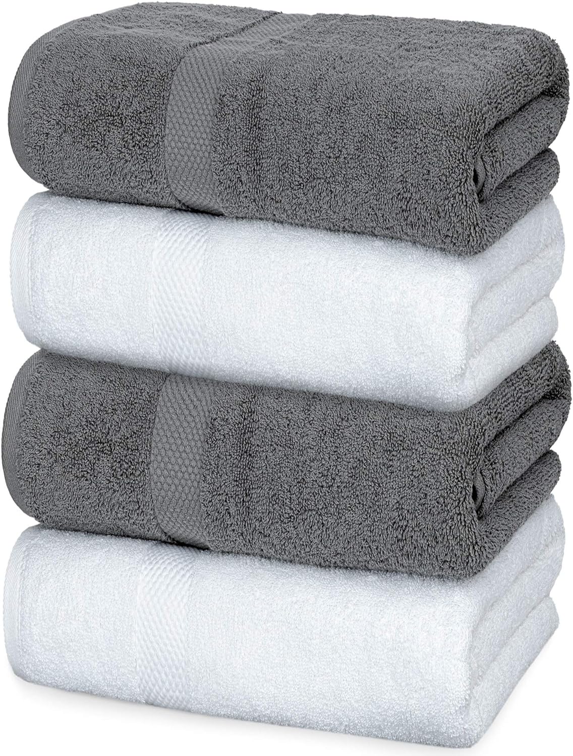HOTEL COLLECTION - 4-Piece Bath Towels are generously Sized at 27x54 inches, plenty of room for comfortable lounging after a refreshing shower or relaxing soak. Each towel is spun from fluffy 700 GSM long staple 100% combed cotton - soft, durable, quick-dry, and wonderfully absorbent. It is more absorbent than any Turkish Cotton Towel.