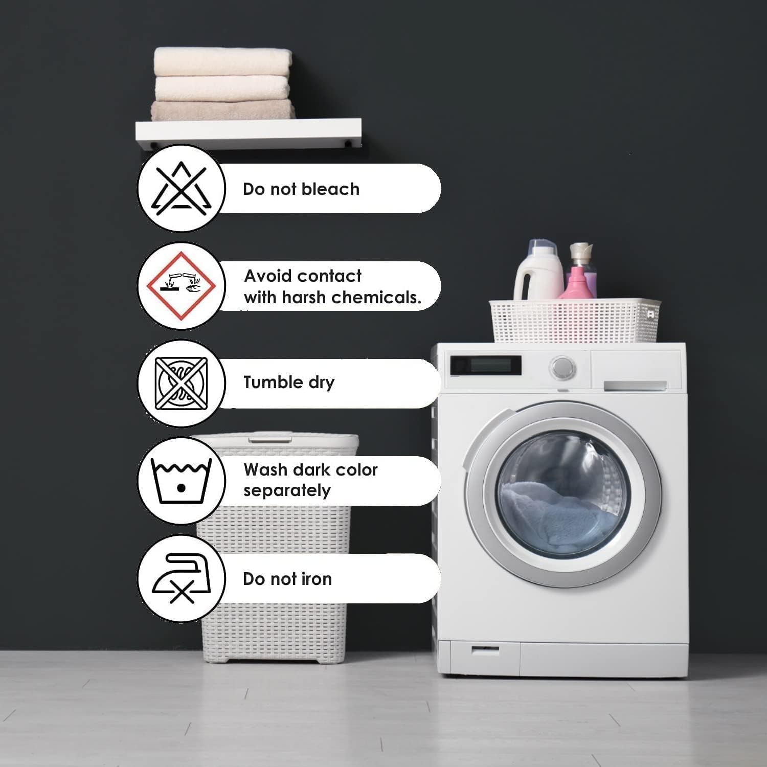 ✔ Wash before use. Machine wash warm with like colors; tumble dry low. Do not iron. Avoid use of fabric softeners. Avoid contact with creams containing benzoyl peroxide.