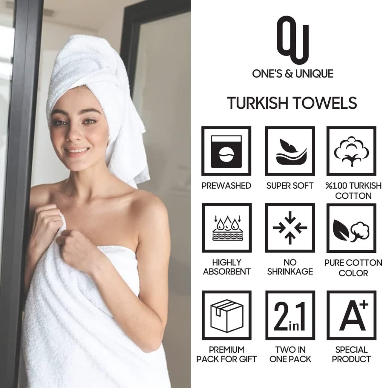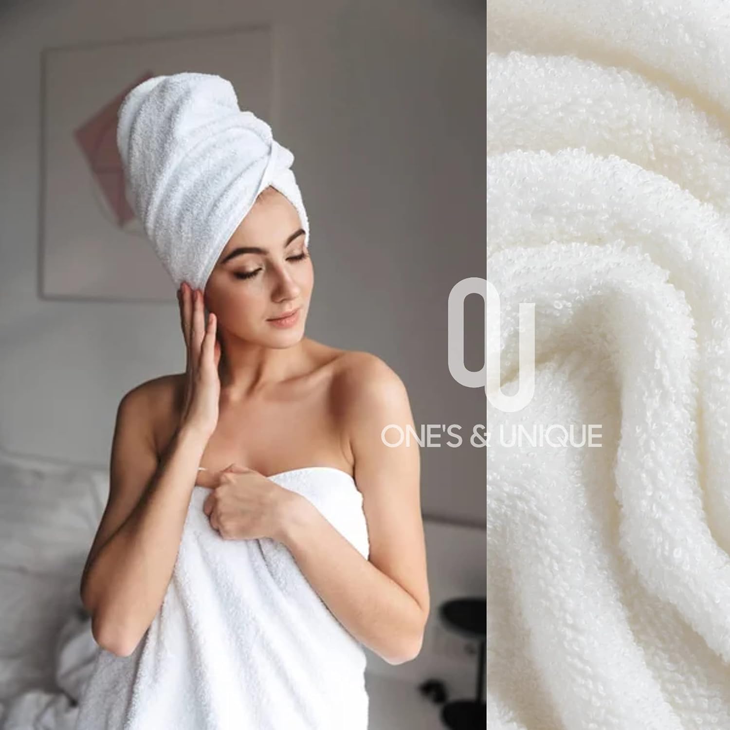 One's & Unique - Bath Towel Set, 7-Star Hotel Design, 100% Organic Cotton Towel, 3 Pcs. (XL+M+S) Pure White Fine Knitted, Never Gets Hard after Washing (90x150 + 50x90 + 50x70)