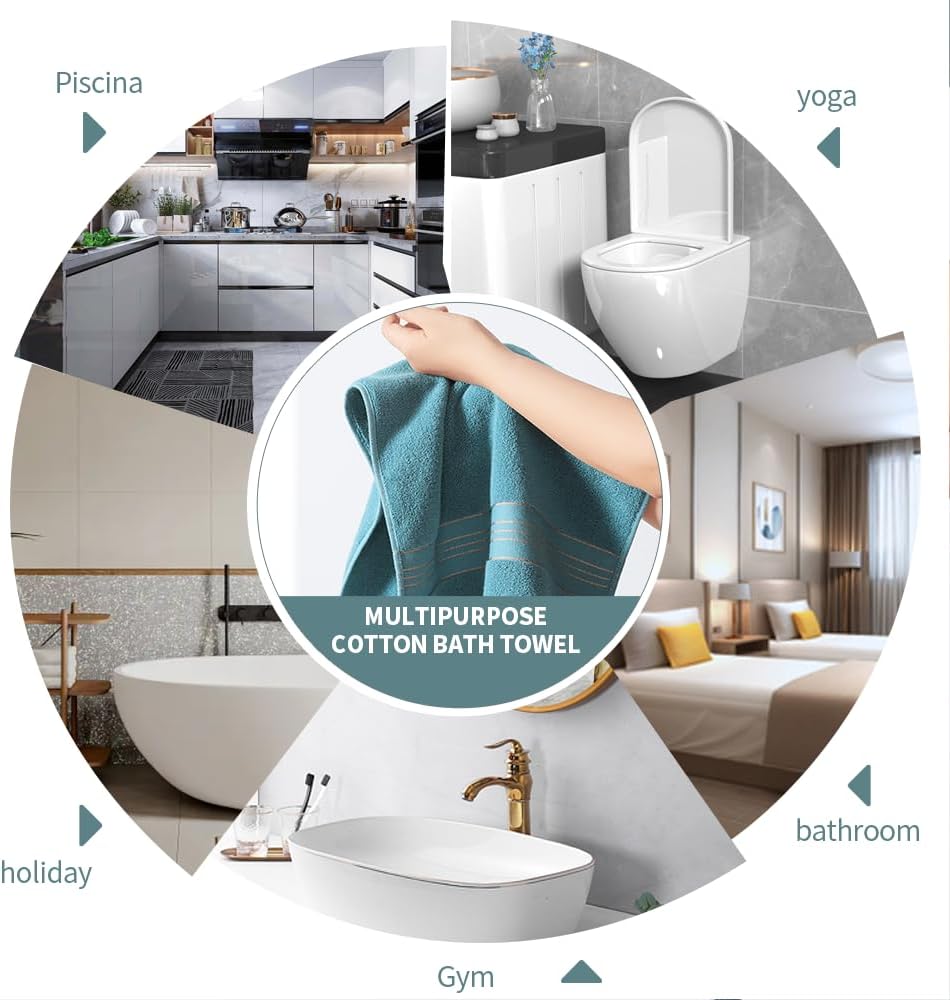 【Multi-function】- Towels are versatile it is perfect for bathrooms, gyms, spas, swimming, beaches, and washing your face, the bathroom set is not only soft and skin-friendly but also sturdy and durable to meet your bathing needs.