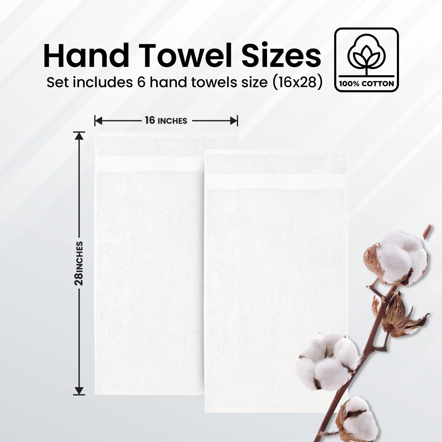 Premium White Hand Towels - Pack of 6, 41x71 cm Bathroom Hand Towel Set, Hotel & Spa Quality Hand Towels for Bathroom, Highly Absorbent and Super Soft Bathroom Towels by Infinitee Xclusives